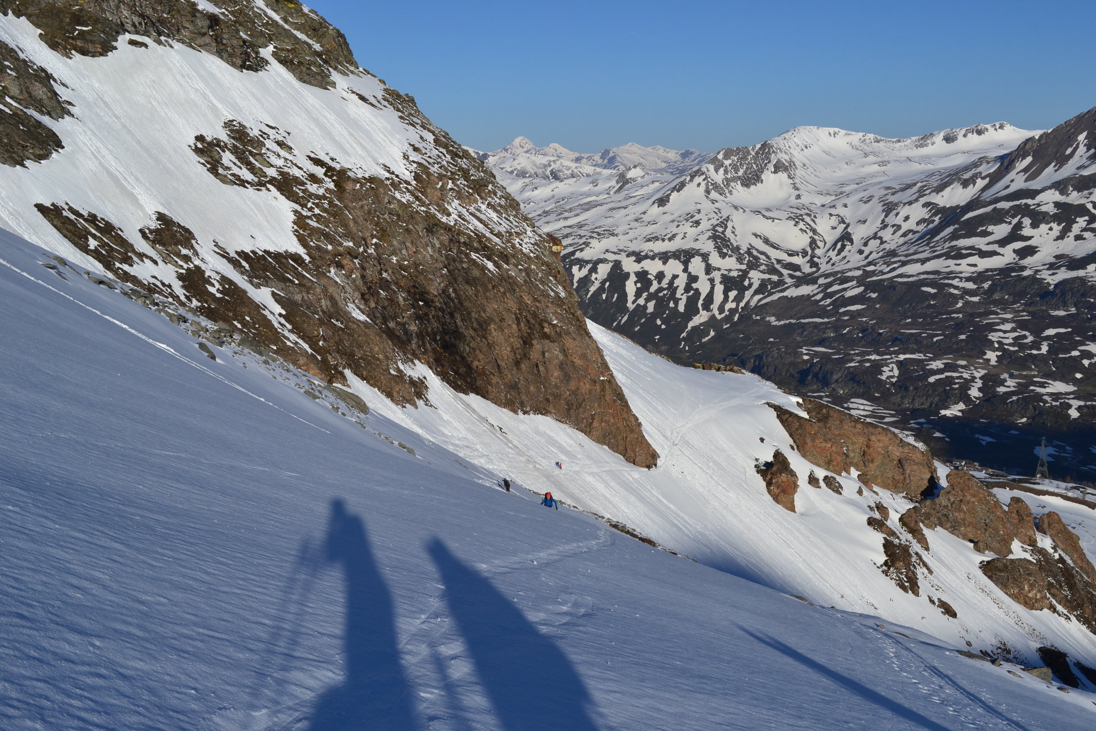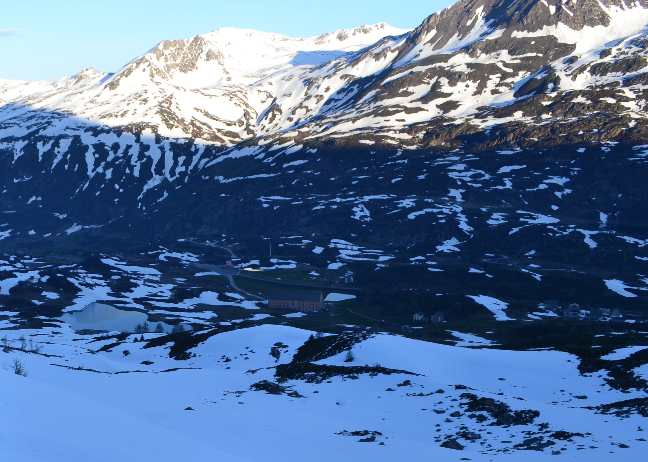 Mit Ski ab 2028 (ab Rotelsee ca 5min hinter dem Hospiz). Unterhalb dem Breithornpass etwas windbearbeiteter Schnee, dem man in der Abfahrt links oder rechts meist ausweichen kann. Harscheisen angenehm.