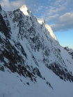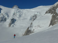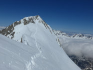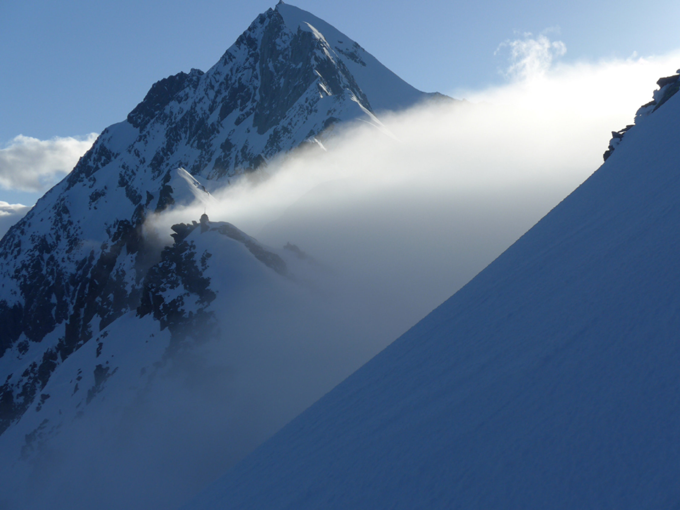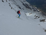 Im Gletscherbruch des Beichgletschers ebenfalls gutes Durchkommen möglich. Den Hauptgipfel haben wir über den Vorgipfel erreicht. Auch der Direktaufstieg zum dazwischenliegenden Sattel sollte gut möglich sein. Bei der Abfahrt (im aufgeweichten Schnee): Achtung auf Spalten! Herrlicher Sulz in den Hängen unterhalb des Beichpasses.