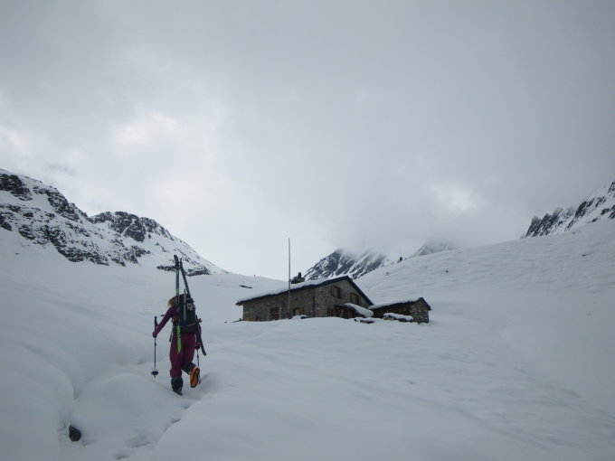 So 24.05.2015 von Lavin aus mit dem Mountainbike in Skischuhen, Skier auf dem Rücksack, auf Forstweg bis Plan dal Bügl. Dort Fahrrad deponieren und zufuß über Wanderweg teils apper teils Schnee bis zur Linard Hütte. Montag, Wecker geht um 04:20 Uhr, Nebel,Nebel und leichter Schneefall, Start wird verschoben auf 06:00Uhr. Leider keine Wetterbesserung. Nächster Startversuch 08:45Uhr zum Piz Linard - gewählter Weg Südflanke. Die Sonne kommt etwas raus und es ist schon etwas warm. Der Berg liegt schwer im Nebel. Schneeverhältnisse - geschlossene Schneedecke jedoch schon etwas durchweicht. Wir gehen hoch Richtung Südflanke, rein in die Rinne. Durch die ganze Rinne bereits eine Lawine abgegangen. Die erste Hälfte schaffen wir mit Skiern dann müssen Skier auf den Buckel und es geht weiter mit Steigeisen bis zum Ausstieg des ersten Couloirs. Der Nebel will sich nicht verziehen. Wir entscheiden zum Abbruch der Tour auf einer Höhe von 3050HM. Trotzdem ist es super. Im Gebiet hat es in den letzten Tagen einiges geschneit. Wenn es nicht zu warm wird geht es ab der Linard Hütte noch eine Weile. Aber diese Tour ist eher Skibergsteigen als Skitouren - aber genau das wollten wir.