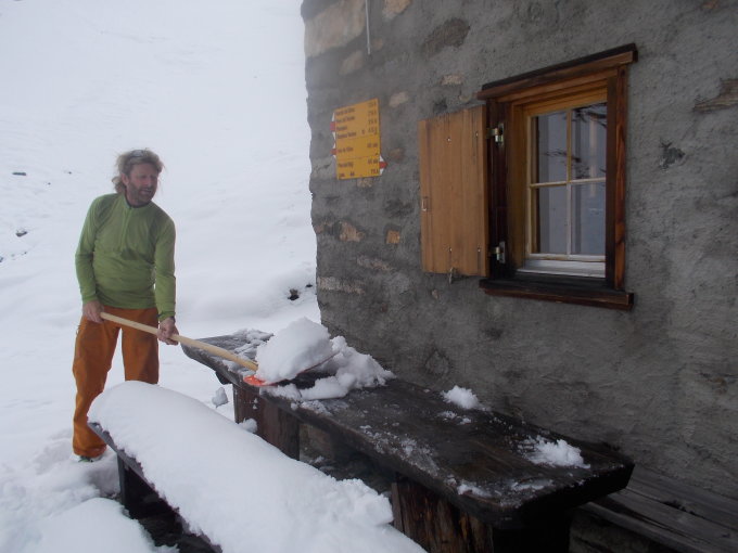 Ab Linard Hütte noch geschlossene Schneedecke - bei den angesagten Temperaturen für die nächste Woche kann sich das schnell ändern und dann wird es zumindest für die ersten 200 HM ein Fussmarsch.