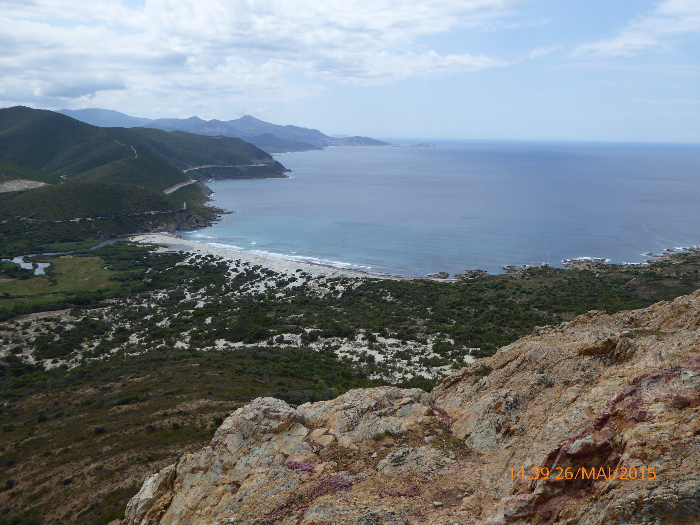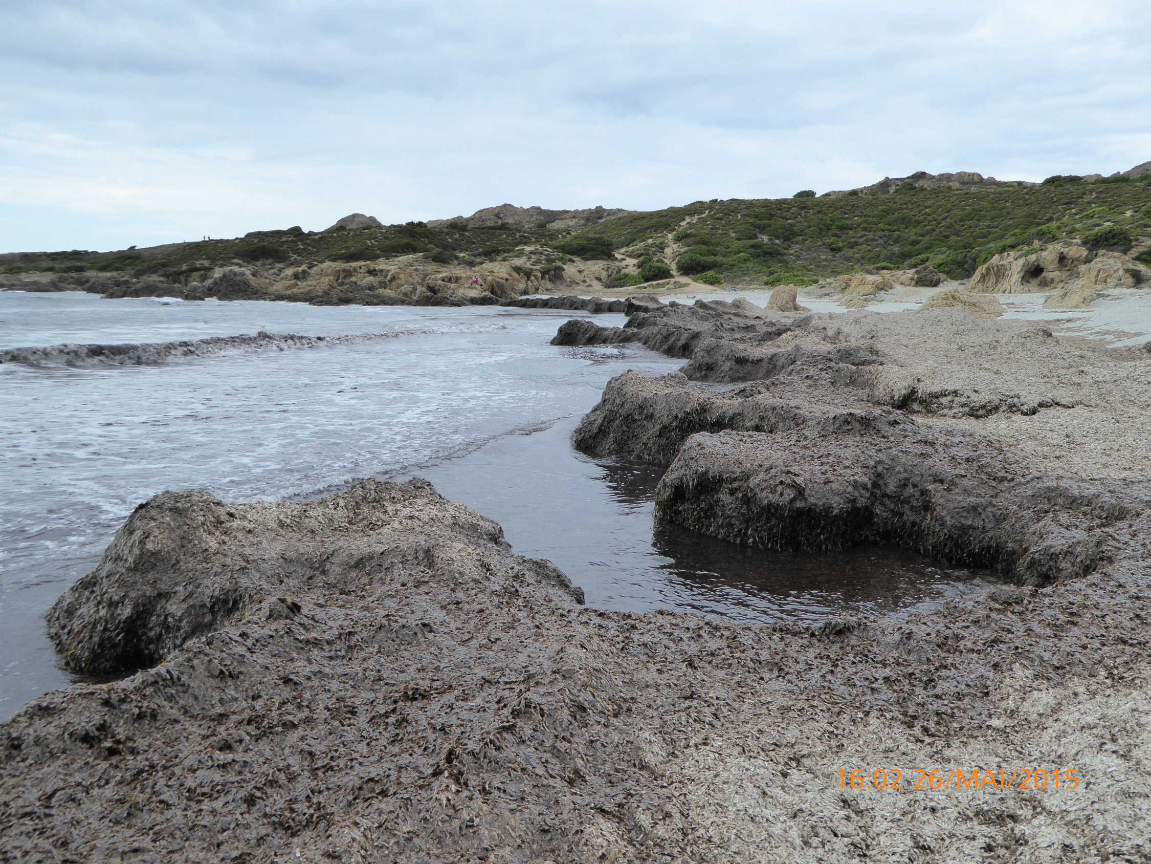 Schwülwarme Verhältnisse. Innerhalb sehr kurzer Zeit zieht der Hauptkamm etwa 10 km östlich von uns komplett zu und in der Folge tobt etwa eine Stunde ein heftiges Gewitter. Unsere Tour in Meeresnähe bleibt grösstenteils sonnig mit aufgelockerter Bewölkung. Der Wind vom Meer hielt das Gewitter im Landesinnern. Um diese Jahreszeit noch gut zu machen. Bei Hitze nicht empfehlenswert. Baden am Plage d’Ostriconi durch Unmengen an angespültem Seetang erschwert.