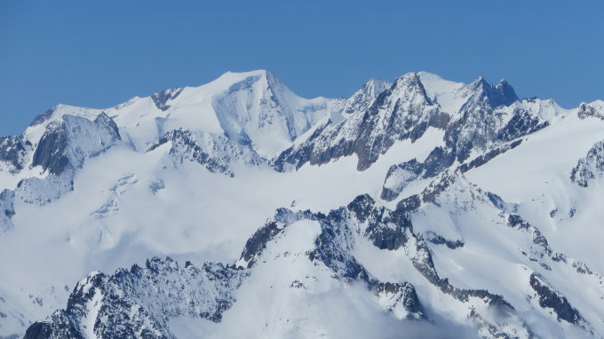 die obersten 600 Hm in der Abfahrt Pulver so schön wie im Hochwinter darunter gut zu fahrender Sulz oder Nasser Pulver.