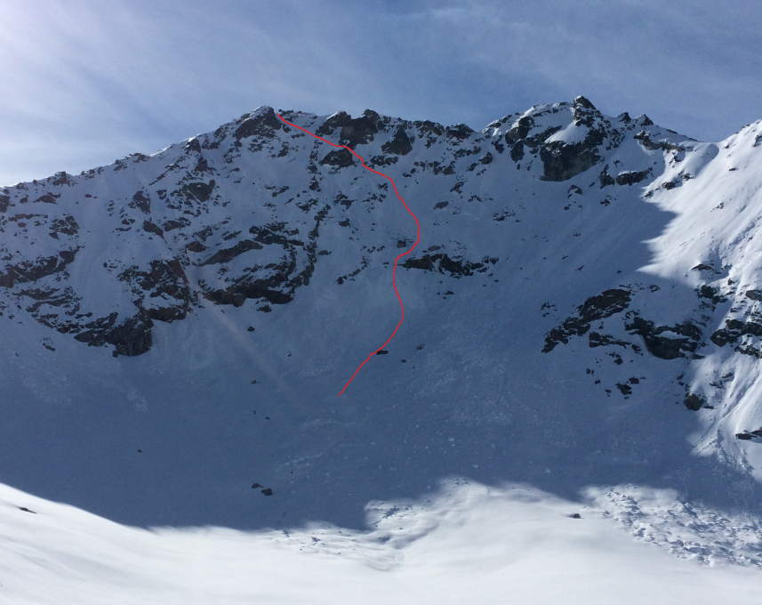 Die Abfahrt direkt vom Gipfel ist momentan sehr zu empfehlen. In der Nordflanke momentan noch etwas Pulver auf stabiler Unterlage. In der von mir gewählten Abfahrt durch die Nordwestwand griffiger Hartschnee.