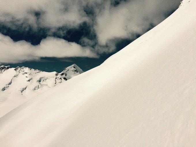 Ein Grossteil der Abfahrt über das Ewigschneefäld muss man laufen und kann nicht abfahren; Schnee ist noch zu wenig verfirnt und man sinkt noch ein. Wir haben das Couloir selber gespurt. Bis zum Bergschrund war das relativ anstrengend, sind tief eingesunken, anschliessend besser.