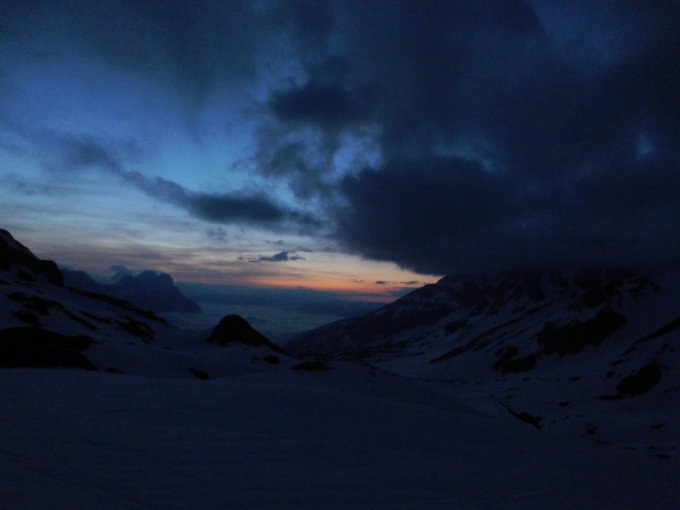 Start der Tour am 4 Uhr beim Klausenpass, zu diesem Zeitpunkt war es noch klar, bei einer Temperatur von + 6 Grad, der Skiaufstieg war gut zumachen ohne Harscheisen,