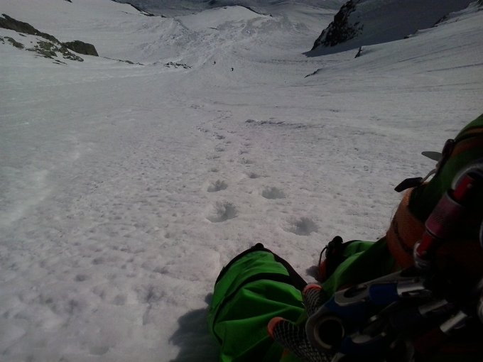Die Wand wurde heute auch abgefahren, ist aber nicht so der Genuss über alte Lawinenkegel runter zu fahren. Ich bevorzugte lieber die gemütliche Variante. Dafür reichte es noch für einen Abstecher aufs Sustenhorn.