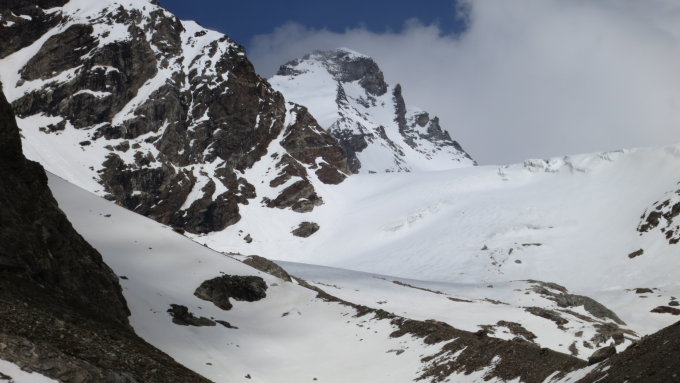 Es herrschen gute verhältnisse. zustieg ab arolla via cold de mont brulé ca. 1 std. zu fuss. zustieg ab Stausee im valpeline ca. 2.5 std zu fuss. dann Schnee!