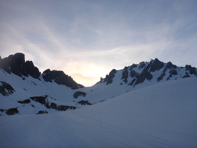 - dann schönster Firn und ab Valgafehrjoch begann es gerade aufzufirnen.