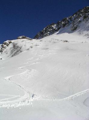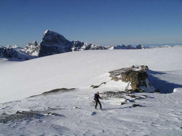 Grundsätzlich herrschten ausgezeichnete Schneeverhältnisse. Im Aufstieg noch teilweise Bruchharst, sonst mehrheitlich leicht gebundener Schnee auf relativ harter Unterlage, der auch auf der grossartigen Abfahrt vorherrschte. Die steilsten Südhänge (bis ca. 40 Grad) waren gegen Mittag schon recht durchfeuchtet und etwas schwer. In Mulden fanden sich teilweise umfangreiche Triebschneeansammlungen. Take it or leave it.