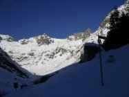Start bei Färnigen (ca. 1500 m.ü.M.). Gemäss Tourenbeschrieb (Nr. 270b auf Karte) bis Wyssgand, danach orographisch links des Rossbachs nach Rossbiel (Punkt 2217). Aufgrund dieser Abweichung wurde danach eine Traverse durch einen steilen Nordwest-Hang notwendig, um wieder auf die Normalroute zu gelangen...