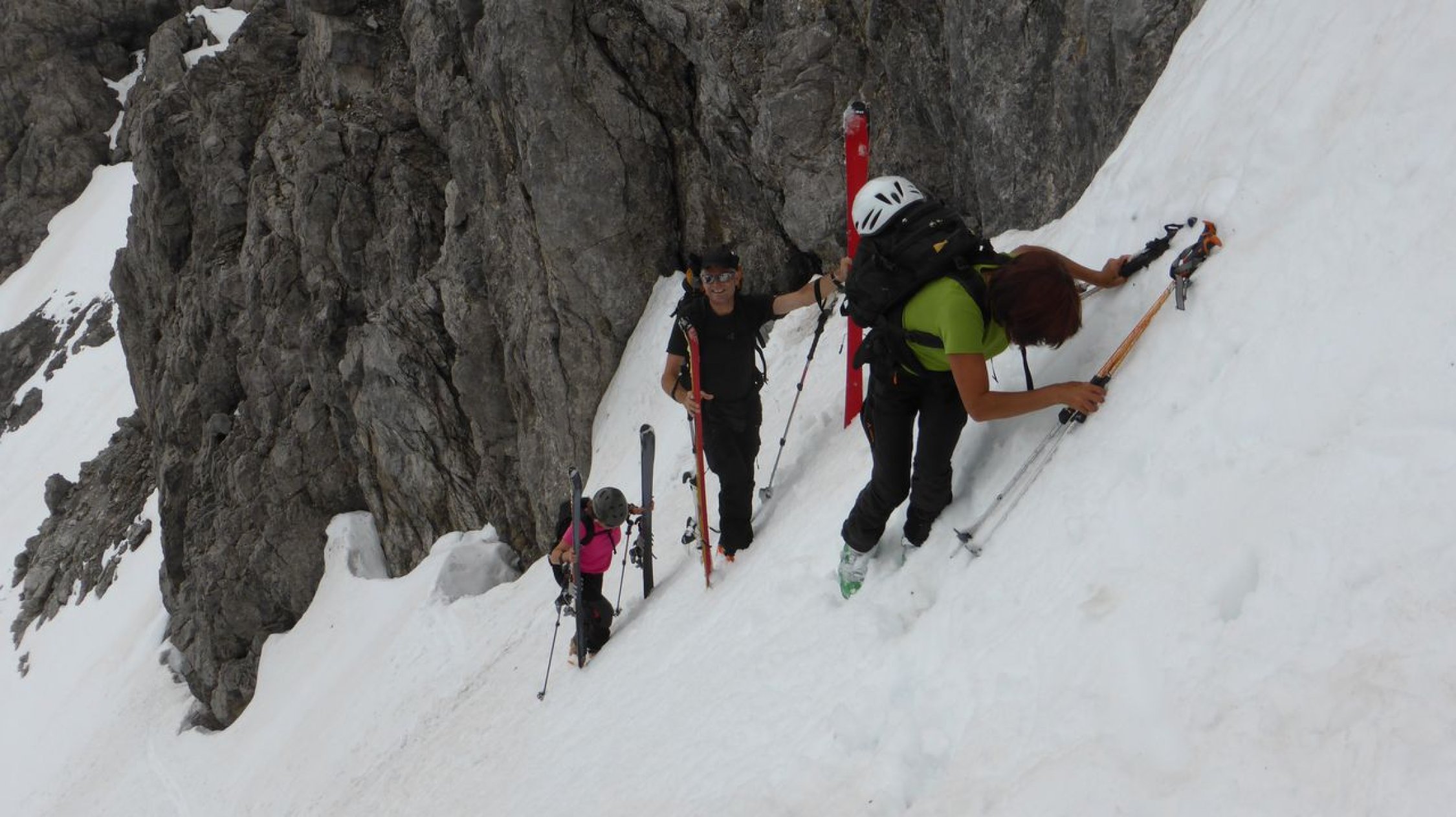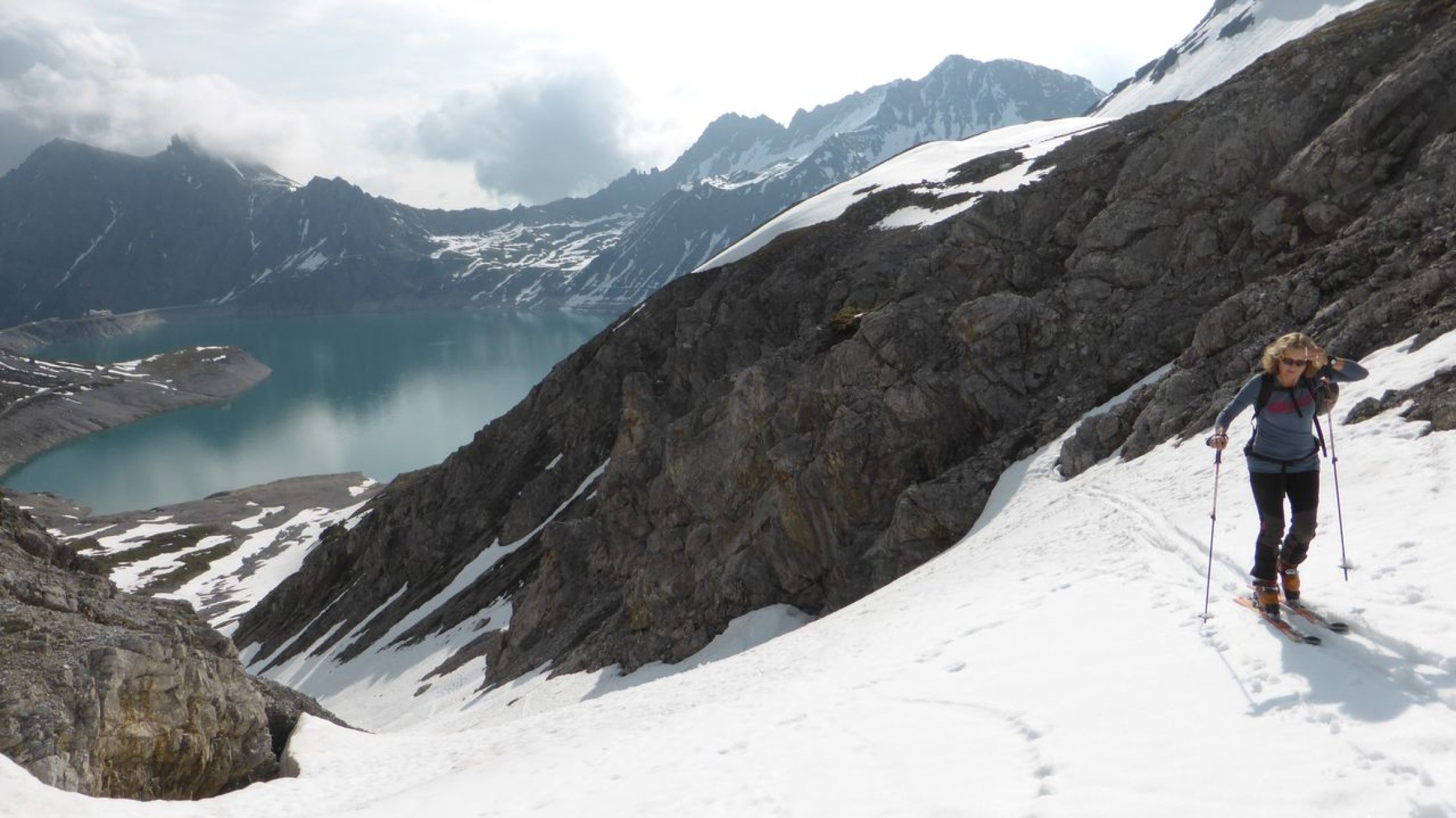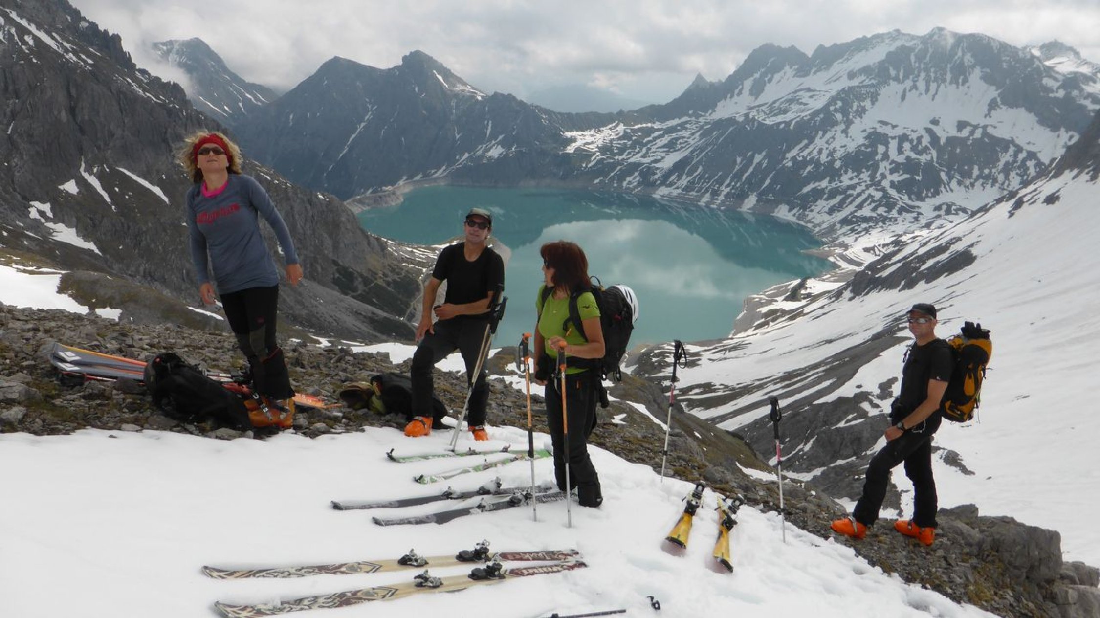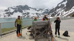 Die 'Schesa' - wie wir denn Berg hier verniedlichend nennen - ist immer wieder eine schöne Frühjahrstour. (Bei uns in Vorarlberg wird der Kinderwagen als 'Schesa' bezeichnet.) Heuer war es oben widrig und kalt - andere Jahre dafür schön ... Der Anstieg über den Gemslückensteig ist eine reizvolle Variante, wenn man schon mit der Seilbahn hier herauffährt. Aber wir sind in den Haaren auch schon etwas grau und somit kann man es doch einmal gemütlicher angehen. Trotzdem ist es immer wieder eine lohnende Tour - vorallem dann, wenn man wieder einmal mit schon lange bekannten Gleichgesinnten wie August, Andrea, Gerda und Rudi unterwegs ist ... :-) Uf http://www.spaceglider.at/touren/bsm.htm sind no a paar Fötile …