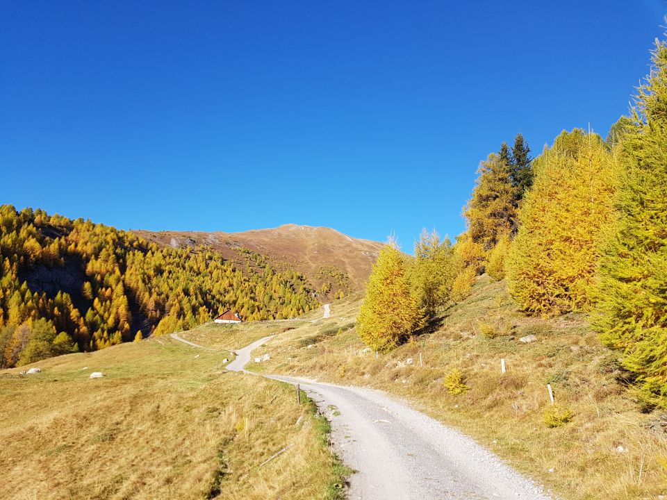 Beim NE-Grat zieht sich in der E-Flanke eine sandige Rinne hinab, bei der man entweder mittig etwas rutschig oder auch seitlich auf Schrofen etwas angenehmer absteigen kann (T5, I). Nun als Abschluss spaziere ich via P2800 und Munt Griatschouls (P2768) auf angenehmer Wiese hinab zur Alp Griatschouls und auf dem Alpenweg, Wanderwege oder Wiese hinab nach S-chanf.