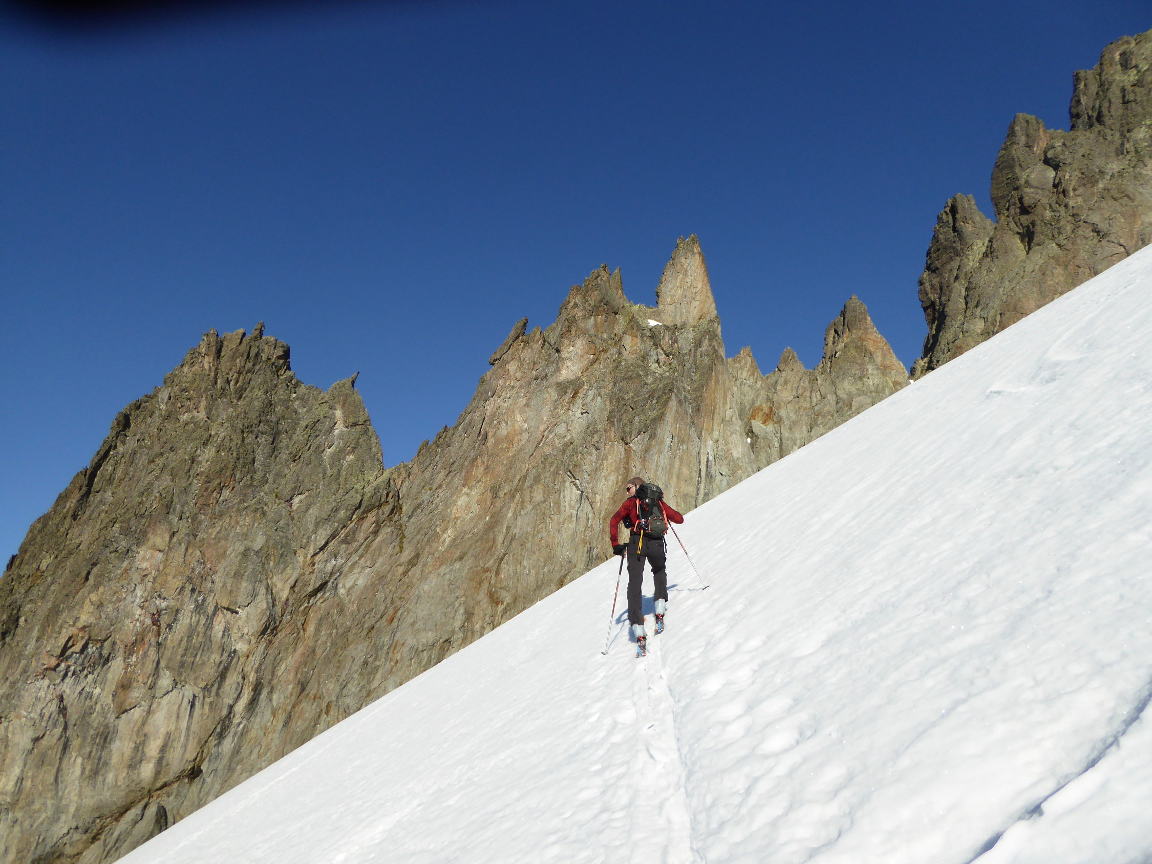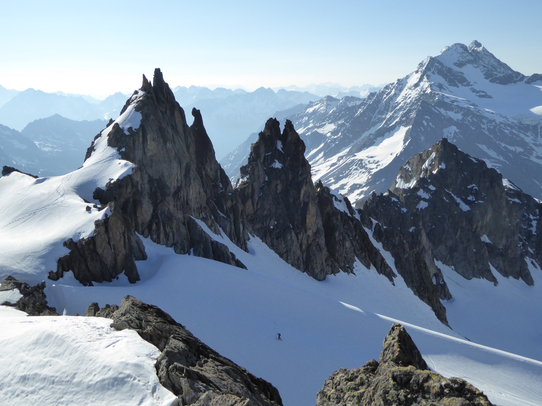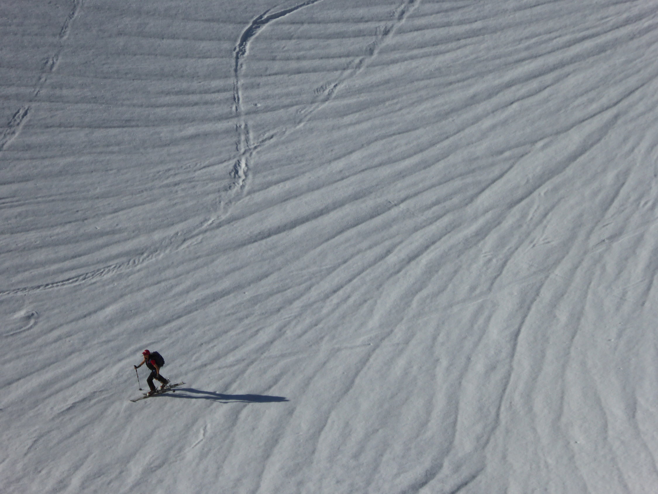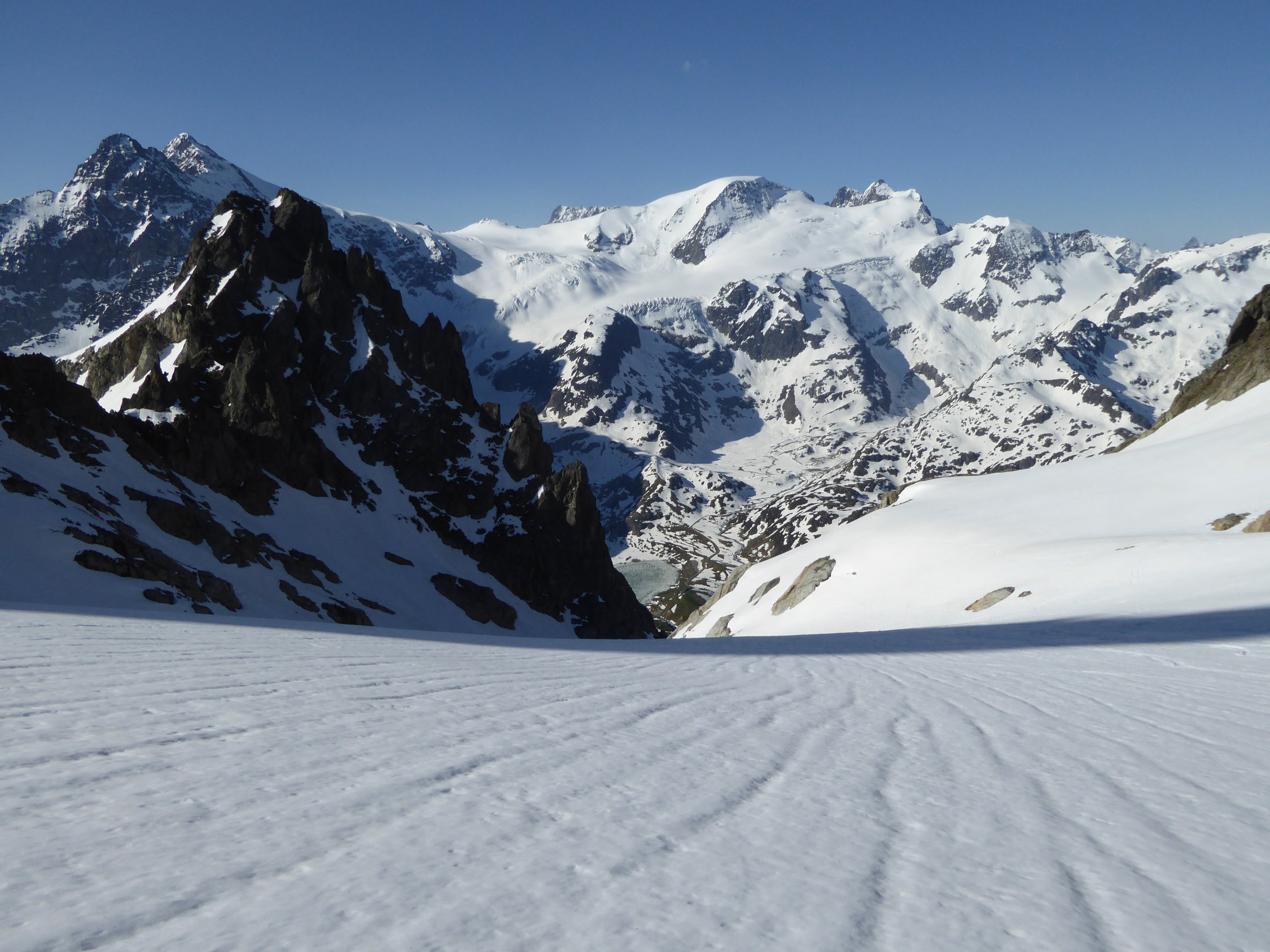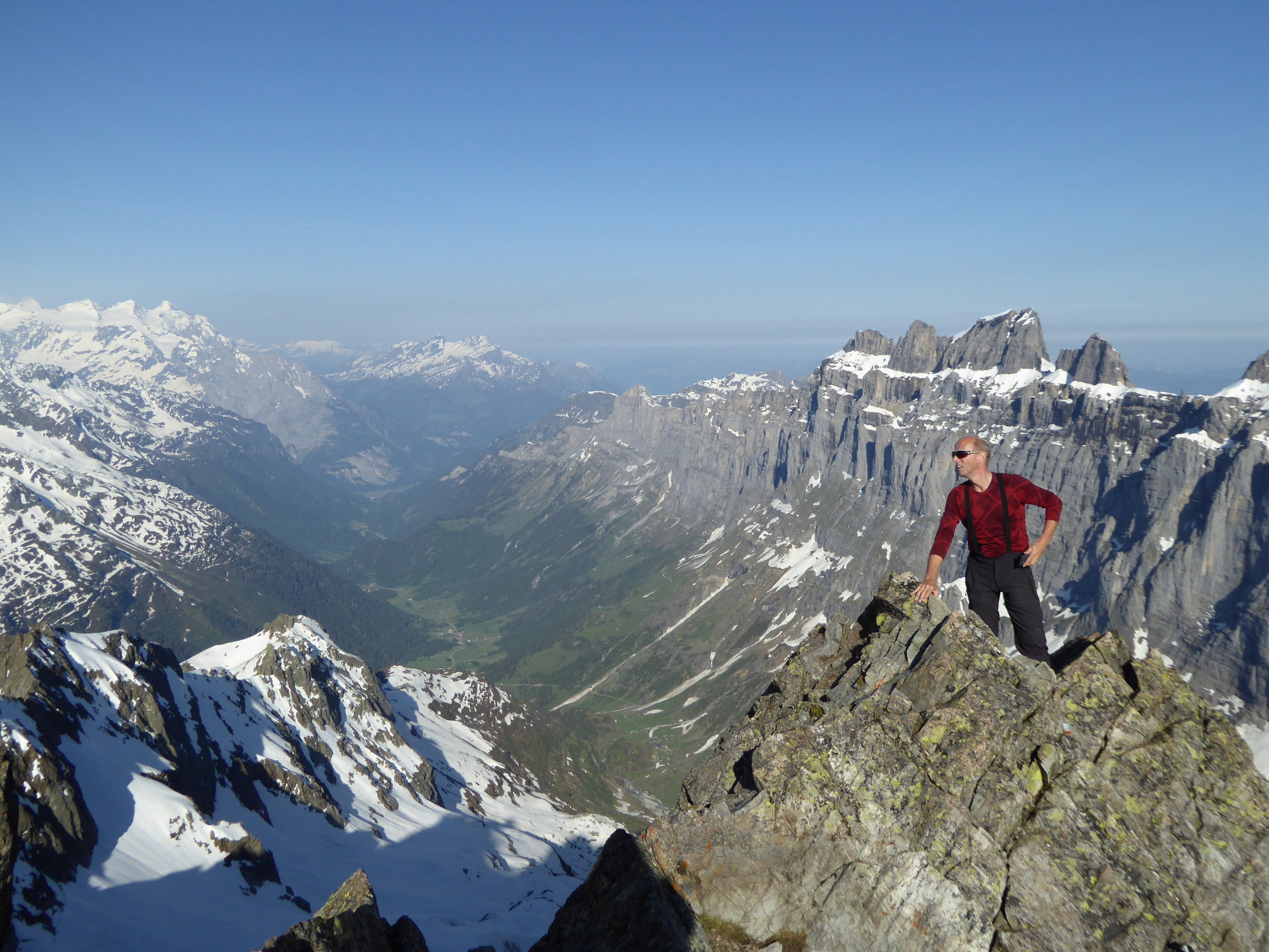 Heute war ja ein sehr schöner Tag und für uns ein Glück das der Susten Pass geöffnet wurde. Wir starteten oberhalb vom Steingletscher von der Passstrasse aus und konnten die Skis an der Strasse anlegen. Der Schnee war tragen und sehr gut gefestigt bis zum Gipfel. Wir konnten vom Fünfingerstock das Panorama alleine geniessen bei Windstille. Die Abfahrt konnten wir um 8.45 Uhr bei idealem Schnee bis zur Strasse machen.