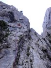 Tolle Verhältnisse bei hochsommerlichen Bedingungen: Klettern im TShi! Einzig die (anstrengende) 6a Piaz-Klemm-Drück-Schmier-Länge war... ja eben nass.
