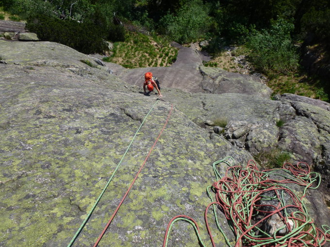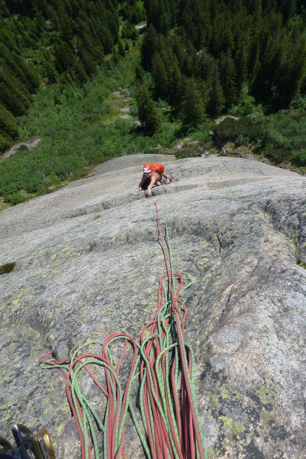 5. SL 5c+: insgesamt sehr schöne Länge. Etwa 2 Passagen knackig (Platte) ansonsten recht leicht. Man muss halt auch hier sauber auf den vorhandenen oder vorgestellten Strukturen stehen.. dann gehts schon :-)