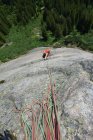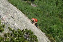 Die letzte SL sind wir statt zum Muniring bis zum Stand der Nachbarroute geklettert (ca. 5 Meter weiter oben) - der ist schön fürs Abseilen eingerichtet und ist bequemer zum den Nachsteiger zu sichern.