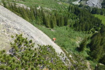 3. SL 5c: Fängt ganz harmlos an.. einfache Kraxelei mit super Trittchen... aber dann auf den letzten Metern kommt die erste Probe für Plattentauglichkeit der Schuhe und Nerven ...da hilft es auch nichts wenn man im Kalk-Klettergarten eine 6b ziehen kann :-(