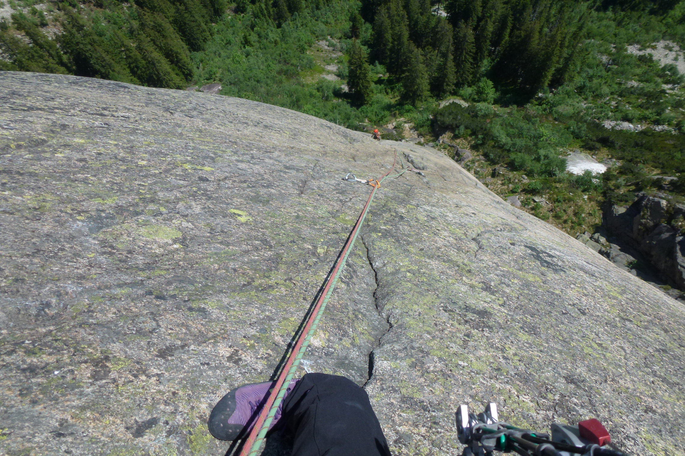 2. SL 5a: schön - kurzer Aufschwung am Anfang, dann einem Riss folgend leicht rechts haltend hoch zum Stand.