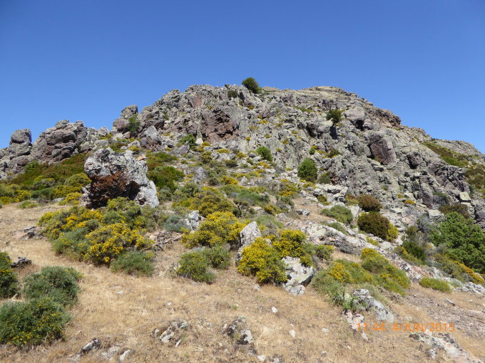 Die Tour wurde bereits am Donnerstag, 4. Juni 2015 durchgeführt. Für die gesamte Tour muss man etwa 6 Stunden reine Gehzeit einplanen. Am Maison Forestière de Bonifatu (536 m) gute Park/Einkehr– wie auch Übernachtungsmöglichkeit. Bonifatu ist der Ausgangspunkt für alle Hüttenzustiege und Gipfeltouren in diesem Gebiet. Der Aufstieg bis Bocca di l´Erbaghiolu (1210 m) geht durch herrlichen Kiefernwald (die Vögel zwitschern) und weiter bis Bocca di Bonassa (1153 m). Dort befindet sich eine sehr einfache Schutzhütte. Der weitere Aufstieg führt durch wildes Fels- und Schrofengelände, leider mit mehreren kurzen Anstiegen und Abstiegen. Auf Steinmänner unbedingt achten. So kommt man am besten und kräfteschonend durch dieses wilde Gelände. Ab Bocca di Bonassa (1153 m) bis Capu di Vegnu (1388 m) keinerlei Schatten mehr. Bei Hitze ist von der Tour abzuraten. Ausreichend Flüssigkeit mitnehmen. Der Weg zieht sich. Der vermeintliche Gipfel stellt sich bis zum Schluss als immer noch ein Zwischengipfel heraus. Am Gipfel viel Gesellschaft durch Fliegen, die um das Gipfelkreuz surren. Abstieg auf gleicher Route bis Bocca di Bonassa (1153 m). Der Weg von hier nach Maison Forestière de Bonifatu (536 m) zieht sich durch Serpentinenabstieg sehr in die Länge und hat noch einen kräftigen Zwischenanstieg zum Schluss bis zum Ziel (etwa 1.5 h ab Bocca di Bonassa, 1153 m). Kürzer, angenehmer und auch schattiger dürfte als Rückweg die oben beschriebene Aufstiegsroute über Bocca di l´Erbaghiolu (1210 m) zurück nach Bonifatu sein