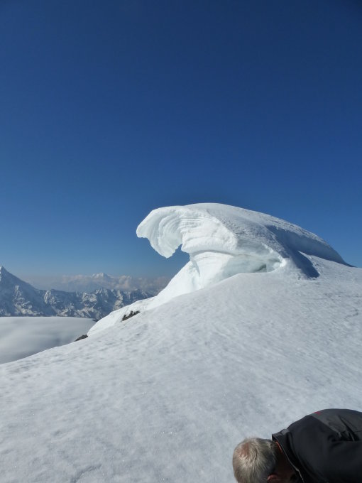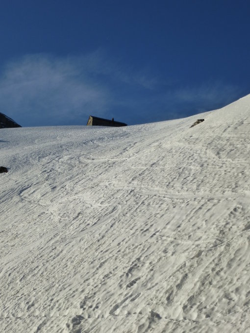 In der Nacht von Freitag auf Samstag sehr warm, daher den ganzen Aufstieg zum Morgenhorn beschwerliche Spurarbeit(ständig knöchel- bis knietief gespurt).