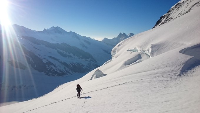 Louwihorn (3777m): Jungfraujoch-Louwihorn-Kranzbergfirn-Aletschfirn-Lötschenlücke-Langgletscher-Fafleralp