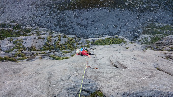 Wir sind direkt aus dem Tal zugestiegen. Dabei sind 900hm zu überwinden, brauchte bei sportlichem Gehen 1:20h. Daher gut als Tagestour zu machen. Besten Dank an den Hüttenwart Tom Rohrer, der diese Route zusätzlich abgesichert hat. Man kann sie nun als gut abgesichert bezeichnen, punktuell sind noch ein paar Klemmgeräte zu platzieren. Ca. 6a+ obl. dürfte wohl zutreffen, wobei dies auch steile Risskletterei 2-3m über der letzten Sicherung sein kann. Ich fand die einfacheren Längen eher streng, die beiden schweren dafür milde bewertet. Mir schien das alles ziemlich durchgehend im 6a/6b-Bereich zu sein.