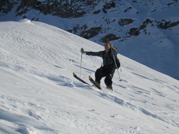 Auf der ganzen Abfahrt Harstschnee. Besonders im unteren Teil schwierige Verhältnisse (Wald).