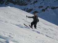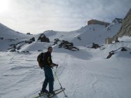 Steiler Aufstieg von Ossasco durch den Wald. Danach dem Tal folgend bis zur Cristallina Hütte auf 2570 Meter. Von da über die Lücke (Abfahrt übers grosse Schneefeld) und erneuter Aufstieg zum Ponte Val Piana und dann Abfahrt durchs Val Cavagnolo nach All'Acqua. Insgesamt in gut 5,5 Stunden machbar.