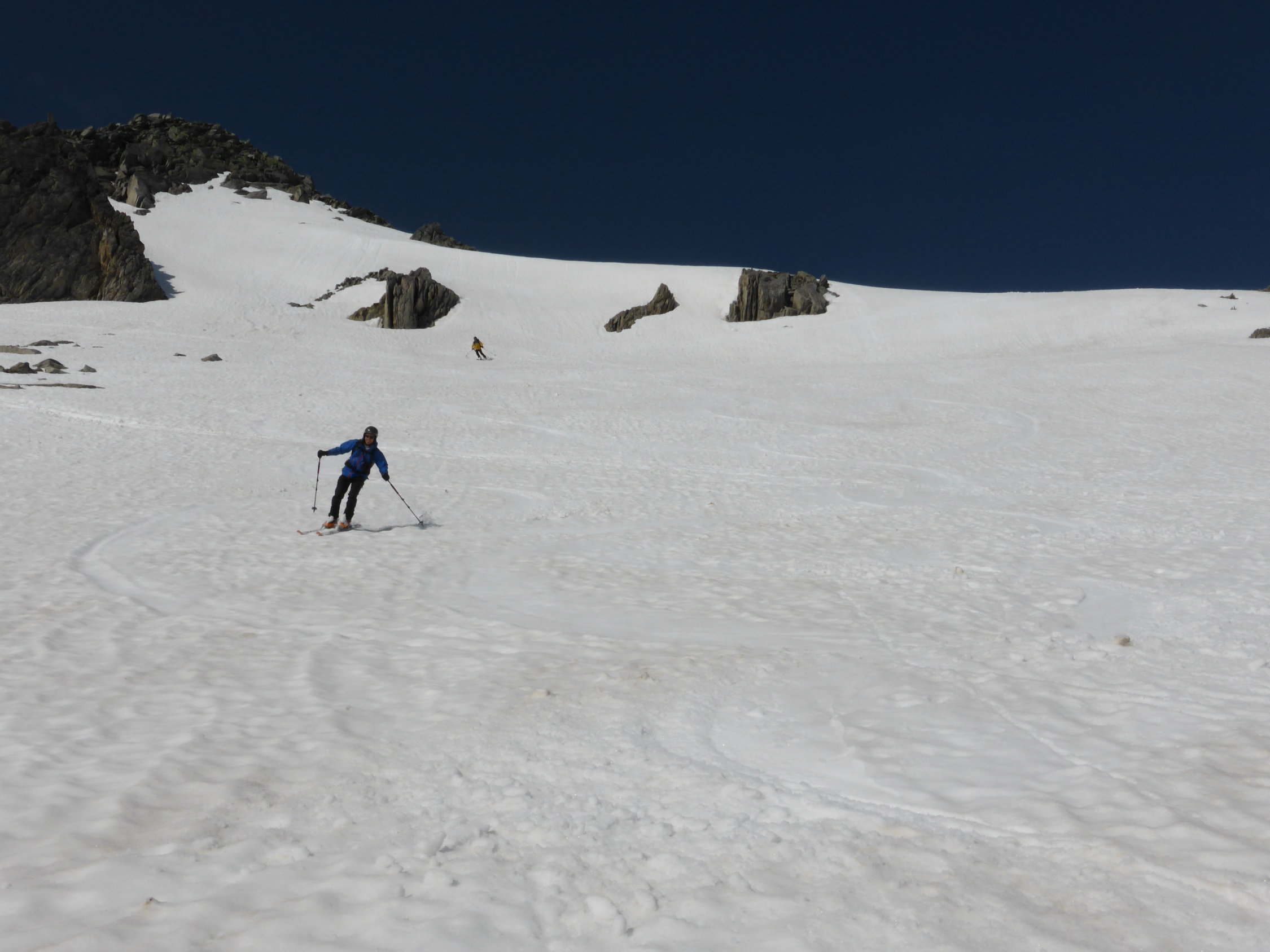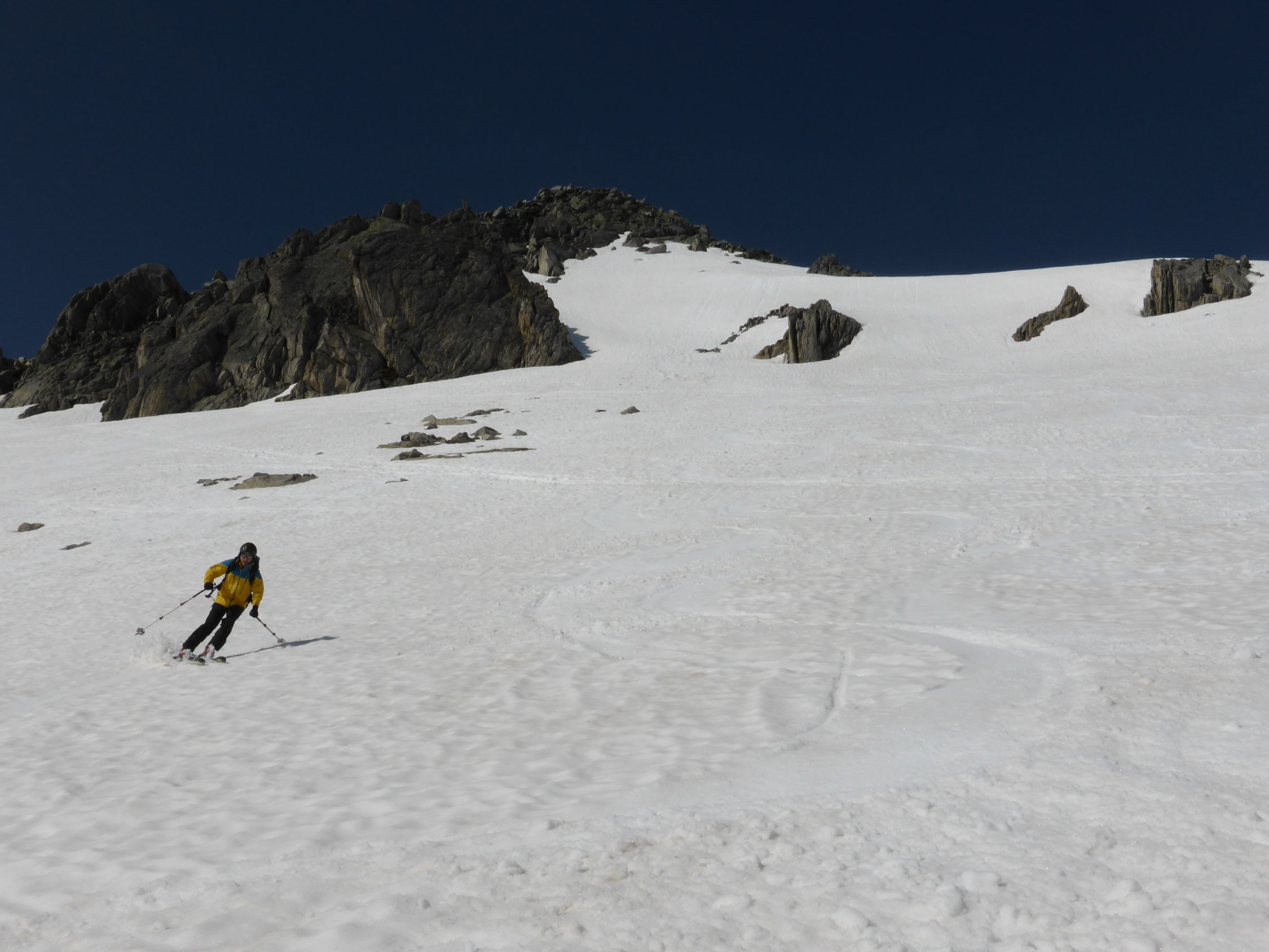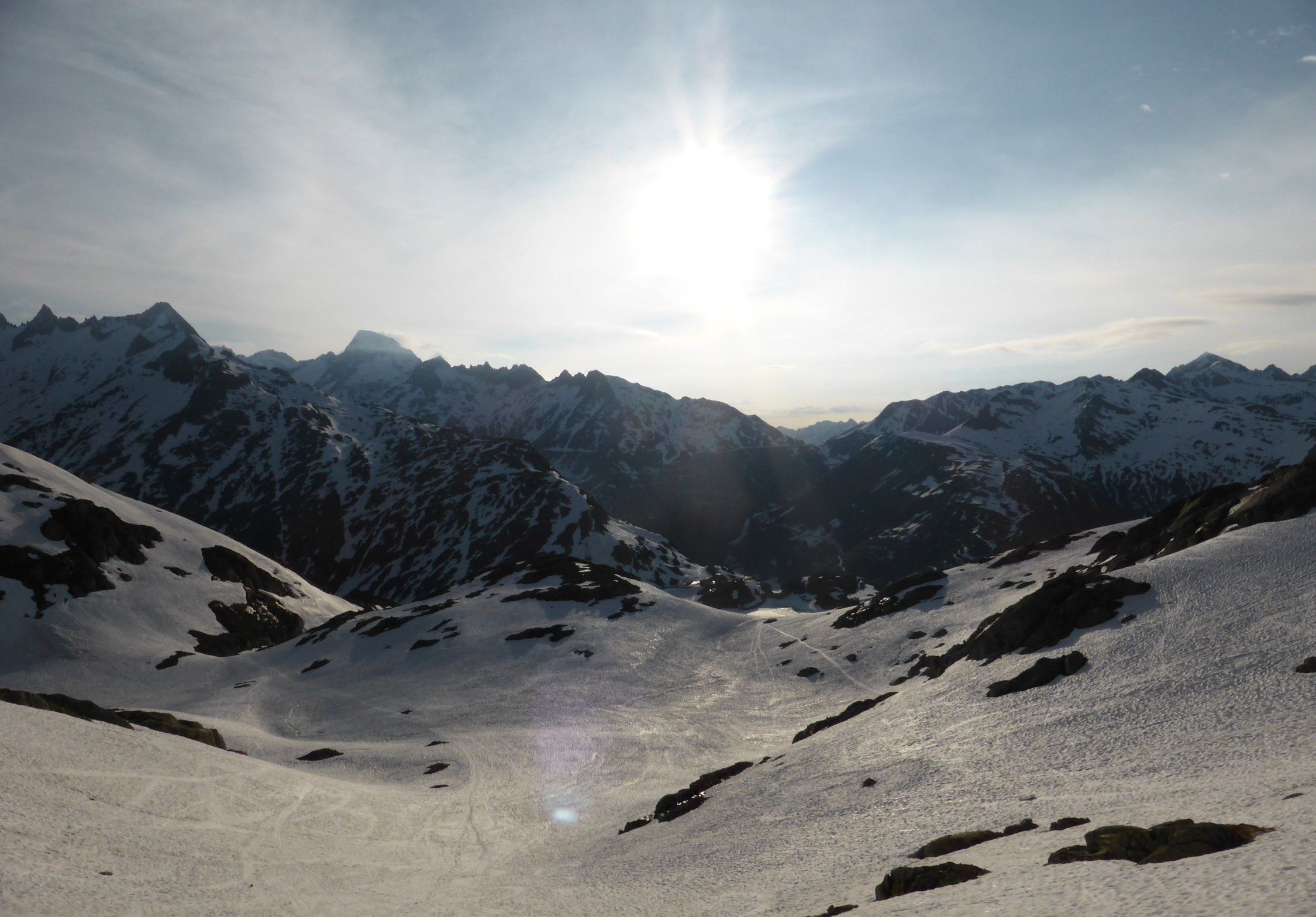 Aufgrund der Wetterprognose entschieden wir uns für eine nicht allzulange und -abgelegene Tour. Und siehe da, wir wurden sehr gut belohnt mit diesem Entscheid. Die umliegenden Gipfel(Galenstock, Dammastock, Gross Muttenhorn usw. hatten fast die ganze Zeit eine Mütze(Wolke) aufgesetzt. Zudem bietet das Sidelenhorn sehr lohnende Abfahrtshänge.