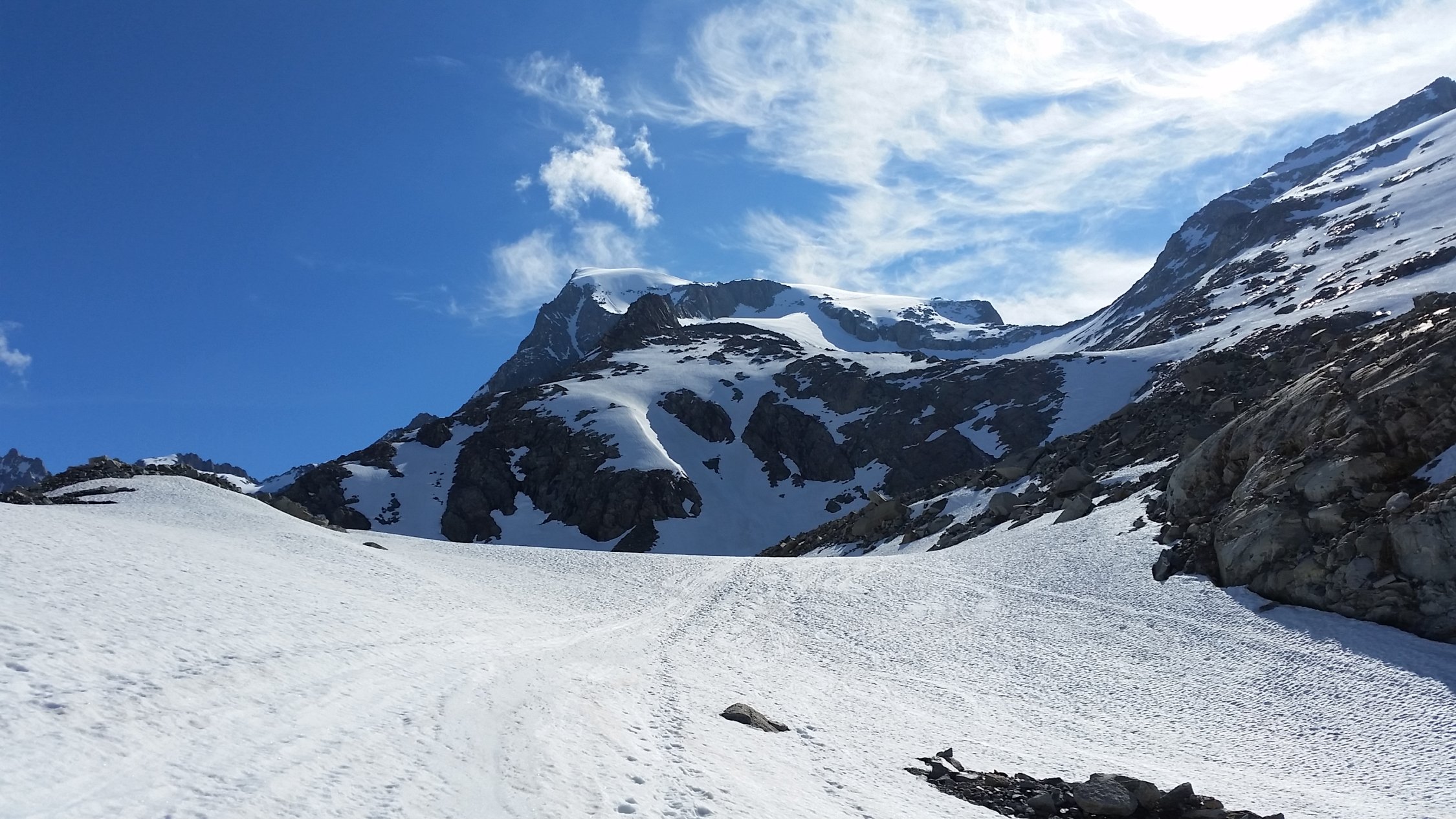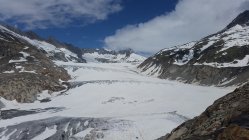 Gletscher teils eingeschneit, sonst Spalten gut sichtbar.