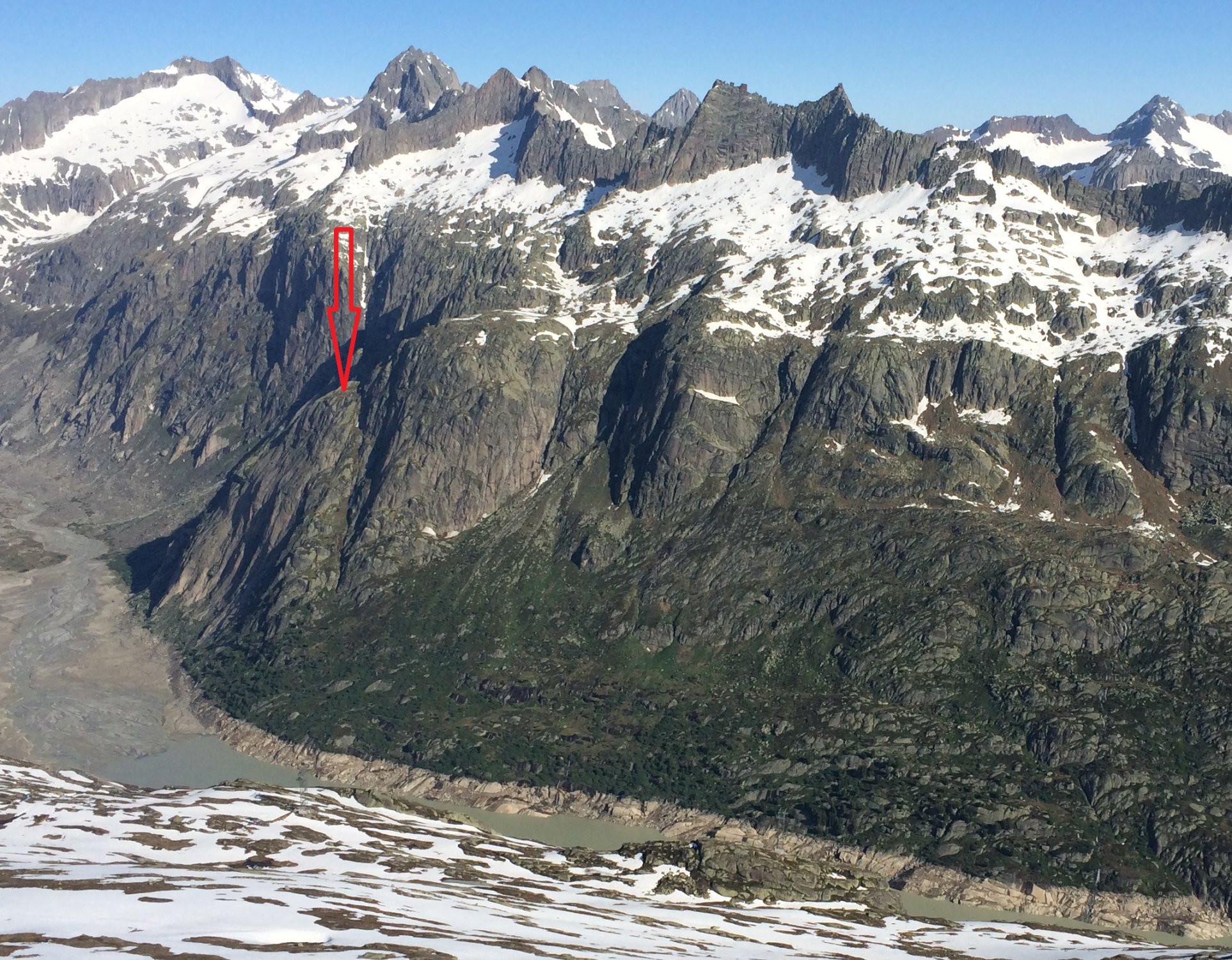 Ich bin heute nicht selbst dort geklettert, sondern habe ein Foto vom Sidelhorn aus gemacht, das recht übersichtlich ist.