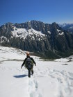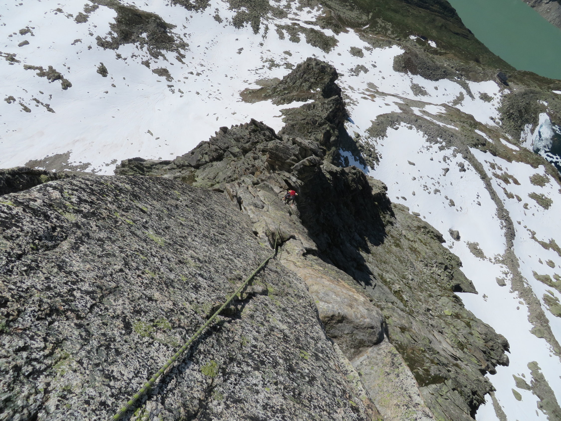 Von der Bergseehütte z.T über Schneefelder zum Einstieg. Die Schneefelder waren nicht richtig durchgefroren und so sind wir immer wieder etwas eingesunken.