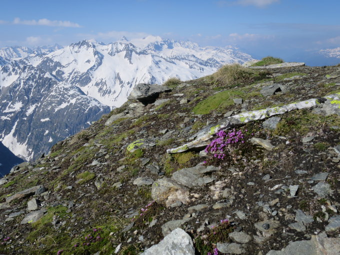 Start der Tour um ca. 06.00 vom Oberalpenstafel (Muttbach) aus. Skis müssen ca. 10 Min. am Furka Dampfbahn Trassee entlang getragen werden. Ab dem Furkatunnel geschlossene, tragende aber ruppige Schneedecke. Gute Bedingungen durch das Muttbachtal zum Muttgletscher hinauf. Unter dem Couloir zum Westgrat die Skis deponiert. Meistens guter Trittschnee im Steilhang und über den westlichen Gipfelgrat. Im Aufstieg zum Gross Muttenhorn stellenweise tiefer, rutschiger Schnee. Wir konnten den Gipfel zu zweit geniessen, bis weitere Tourler eintrafen. Dolce far niente an der Sonne, dabei das gewaltige Bergpanorama genossen. Der Gletscher konnte um ca. 09.30 Uhr leicht aufsulzen und war sehr schön zu fahren. Auch die "Mini Pukelpiste" im Tal des Muttbachs bis zum Tunnel hinab wurde durch die Sonne entschärft. Mit geschulterten Skis am Bahngleise entlang zurück nach Muttbach, begleitet von Pfiffen übermütiger Munggen.
