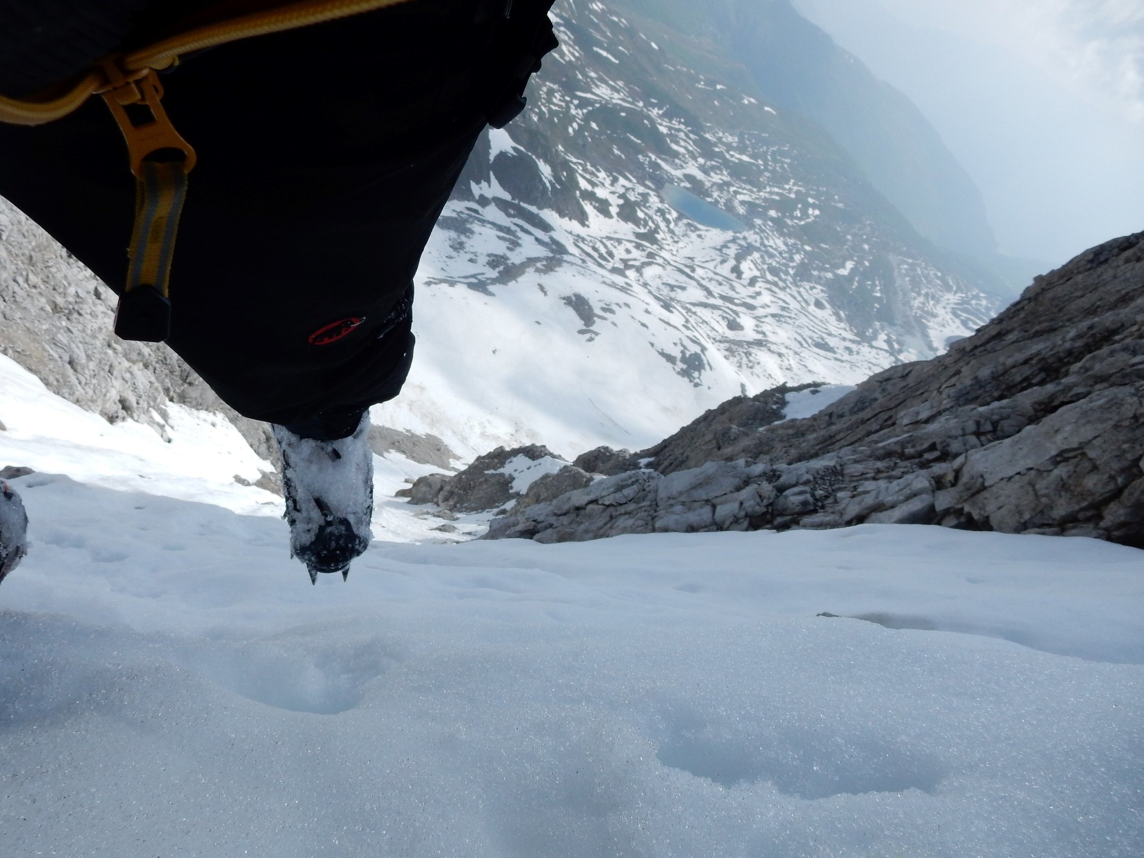 Da die Schneeschmelze fortschreitet, dürfte das Couloir nicht mehr allzu lange durchgehend Schnee aufweisen. Dann ist eine Besteigung über diese Route nicht mehr empfehlenswert.