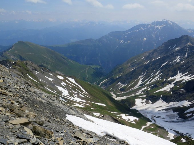 An sich war die Absicht, den ganzen Ostgrat ab Muntaluna zu begehen, aber der Föhnwind schien dafür etwas zu stark. Der obere Teil des Ostgrates ist anspruchsvoll, die direkte Erkletterung der Türme ist nur für Könner in sehr brüchigem Fels geeignet. Darum diesen Abschnitt besser in der Südflanke umgehen, was nicht sehr übersichtlich ist. Nicht zu hoch halten, besser fast horizontal queren, bis man über Schrofen wieder zum Grat steigen kann.