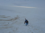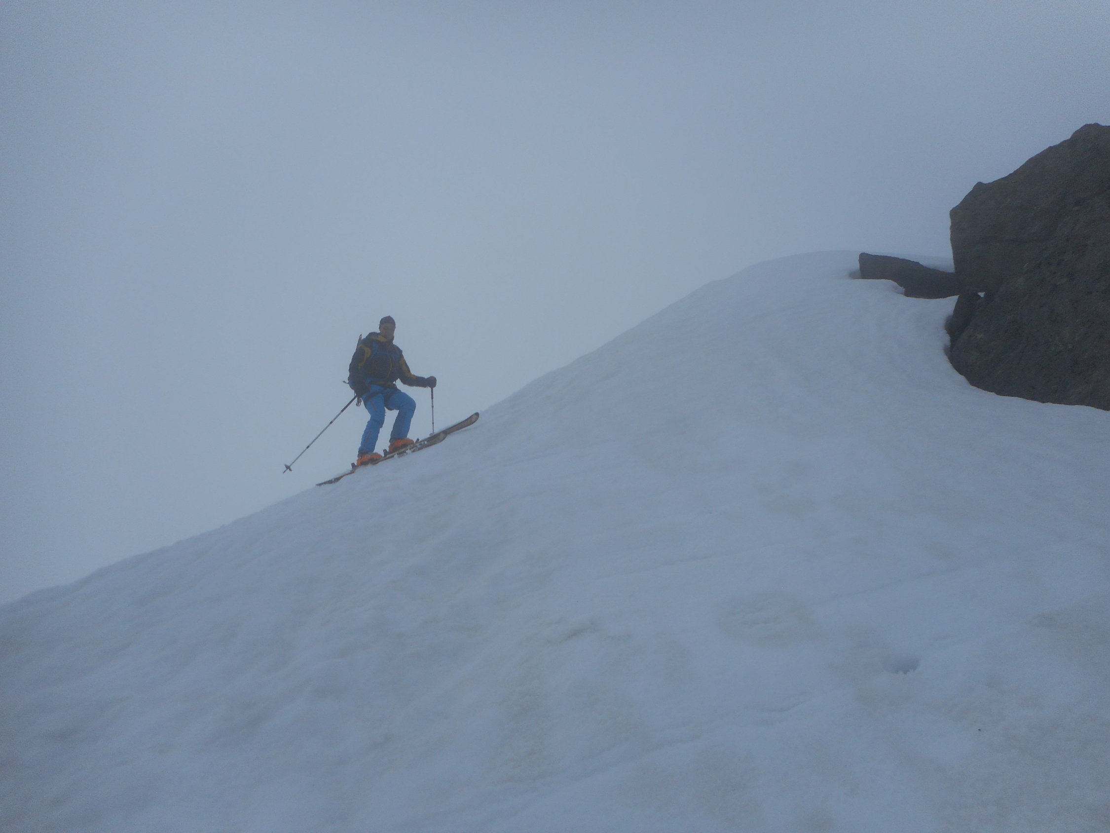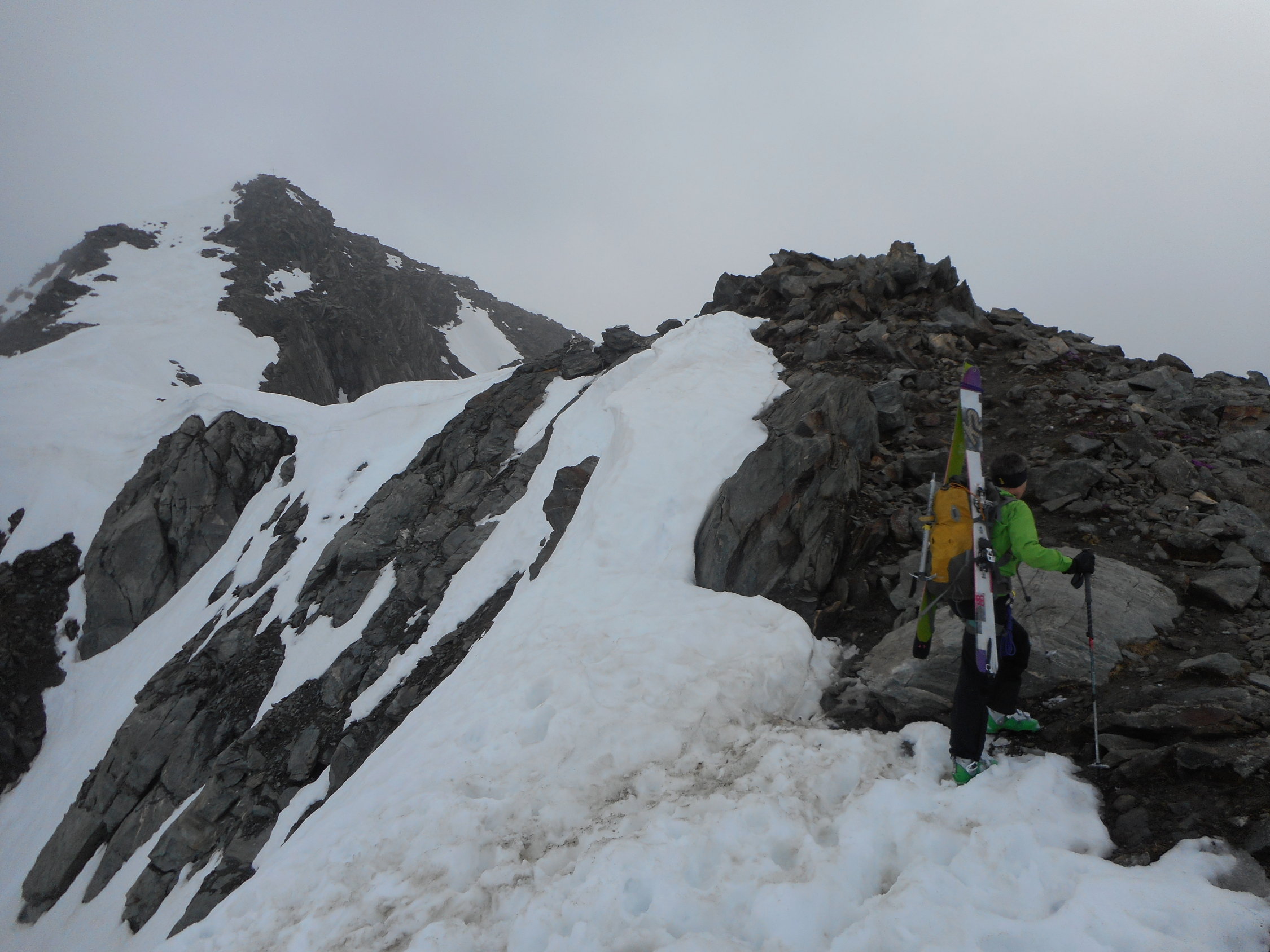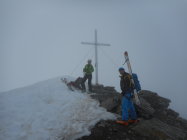 Aufstieg: Die Schneedecken Oberfläche war heute morgen um 5.00 nicht gefroren. Wir sind jedoch nicht eingebrochen. Ganzer Aufstieg ohne die Benützung der Harscheisen gemacht. Im Couloir auf den Westgrat, und am Gipfelgrat gute Tritte.