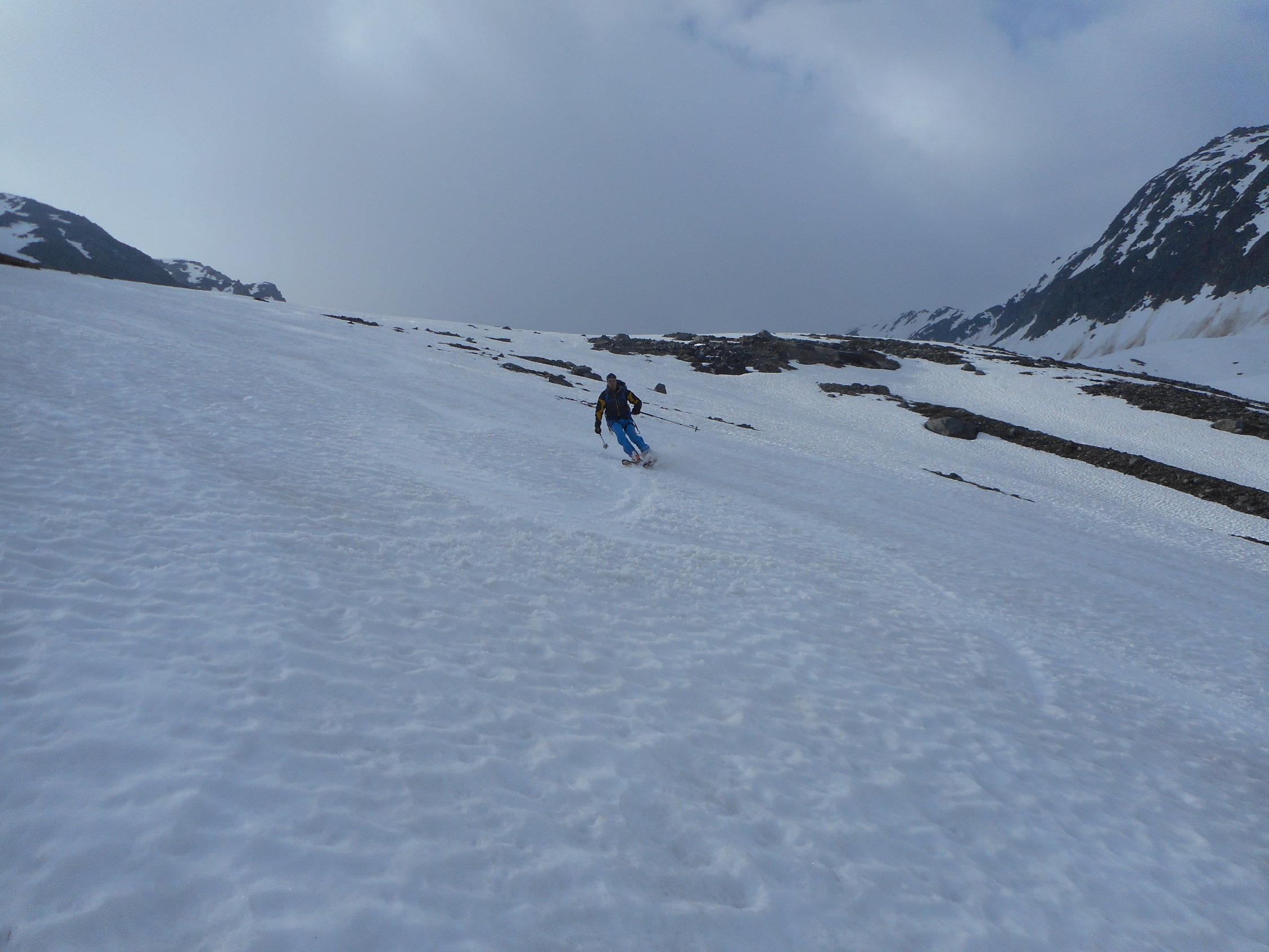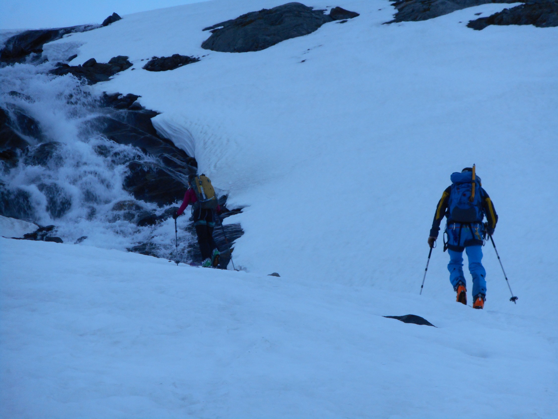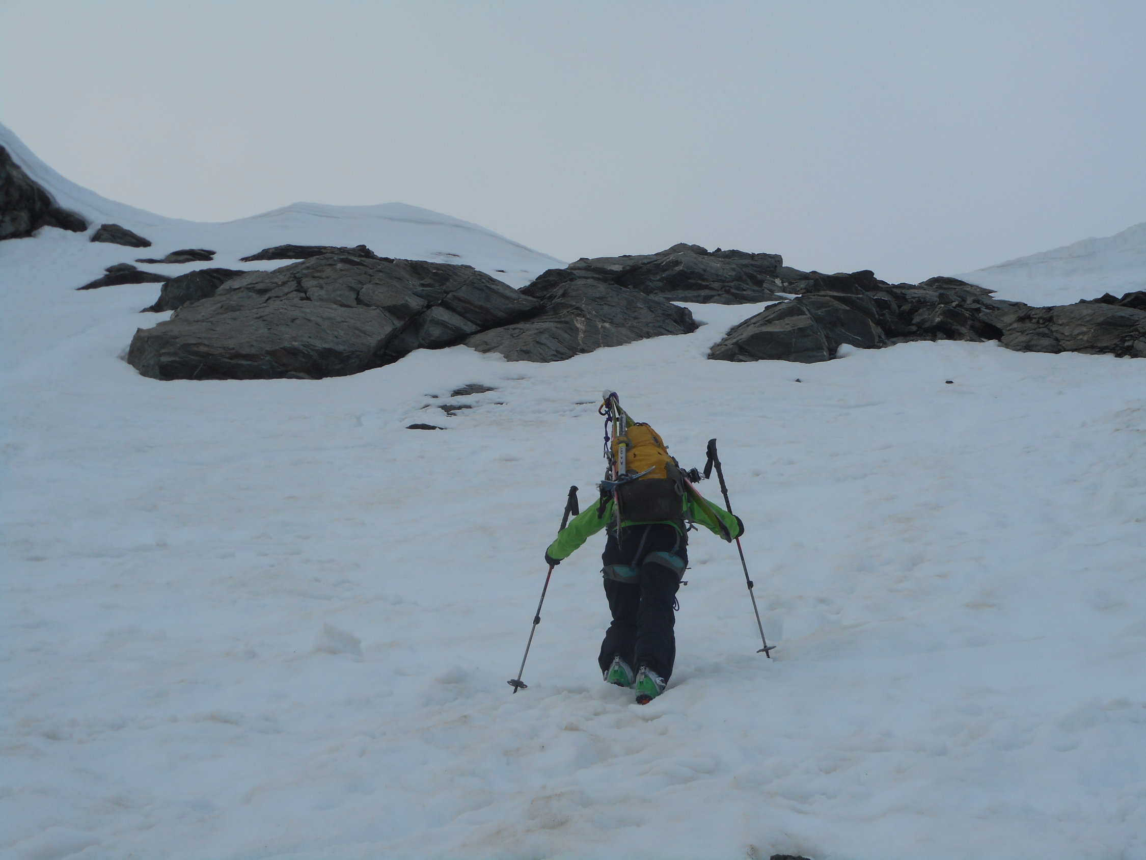Kann den ganzen Monat Juni 2015 noch gut gemacht werden. Es wird einzelne kurze Tragstrecken geben. Aber es kann noch gut 3 Wochen auf den riesigen Lawinenkegeln aufgestiegen werden.