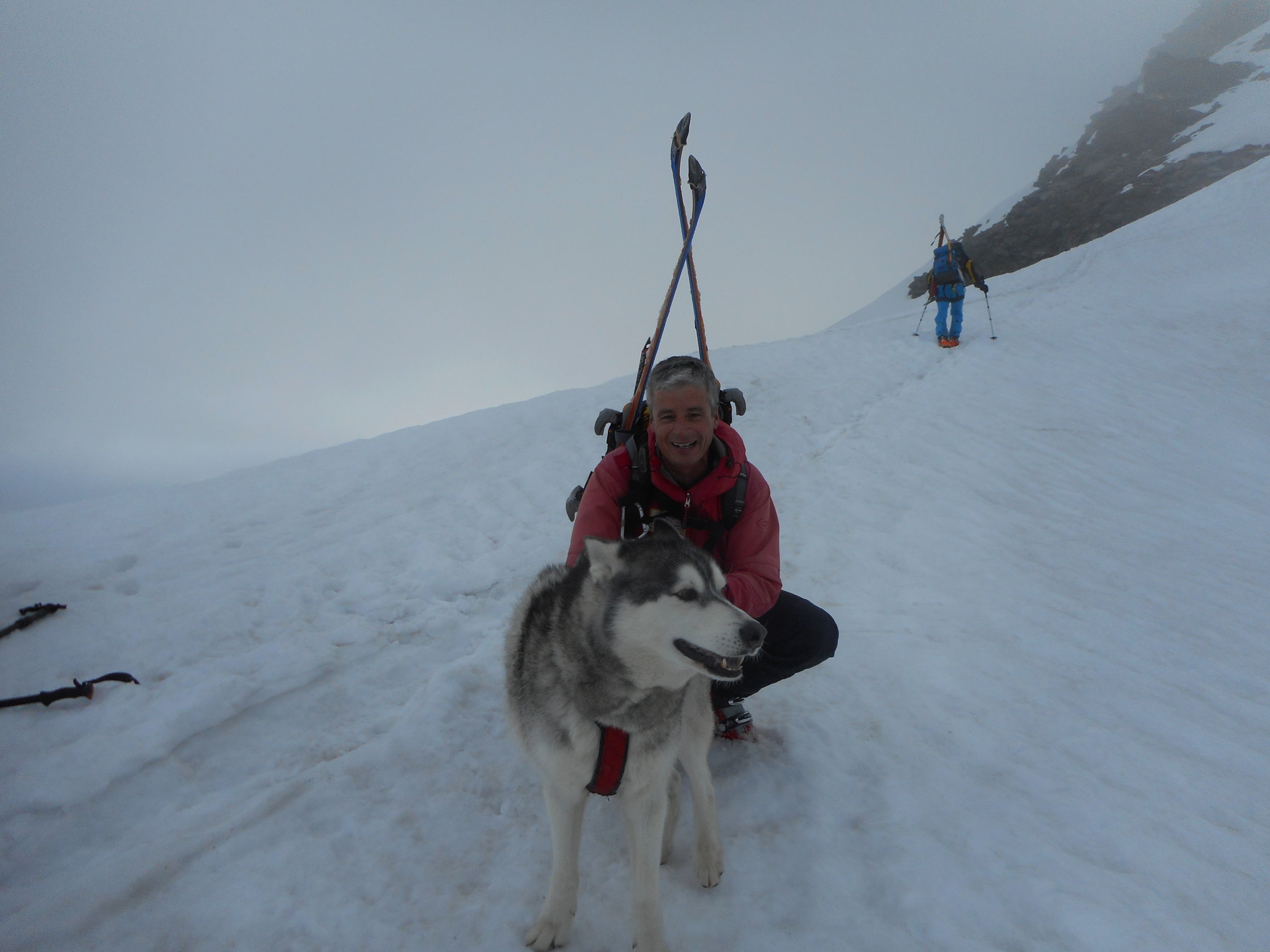 Ein schöner Zufall heute auf der Tour. Wir trafen Powderdream und und weg mit ihren tollen Huskyhunden. So konnte ich Powderdream persönlich zur Schreckhorn Nordwand, und damit zu Ihrem letzten, dem 48 Schweizer Viertausender gratulieren. Bravo !