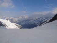 Muttgletscher gut eingescheit und die Rinne im Aufstieg und in der Abfahrt gut machbar. Leider nicht ganz so schöne Sicht auf einem so schönen Berg !