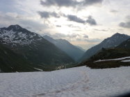 Start 6 Uhr Straße Flüelapass - schon sehr wenig Schnee ab Strasse - jedoch