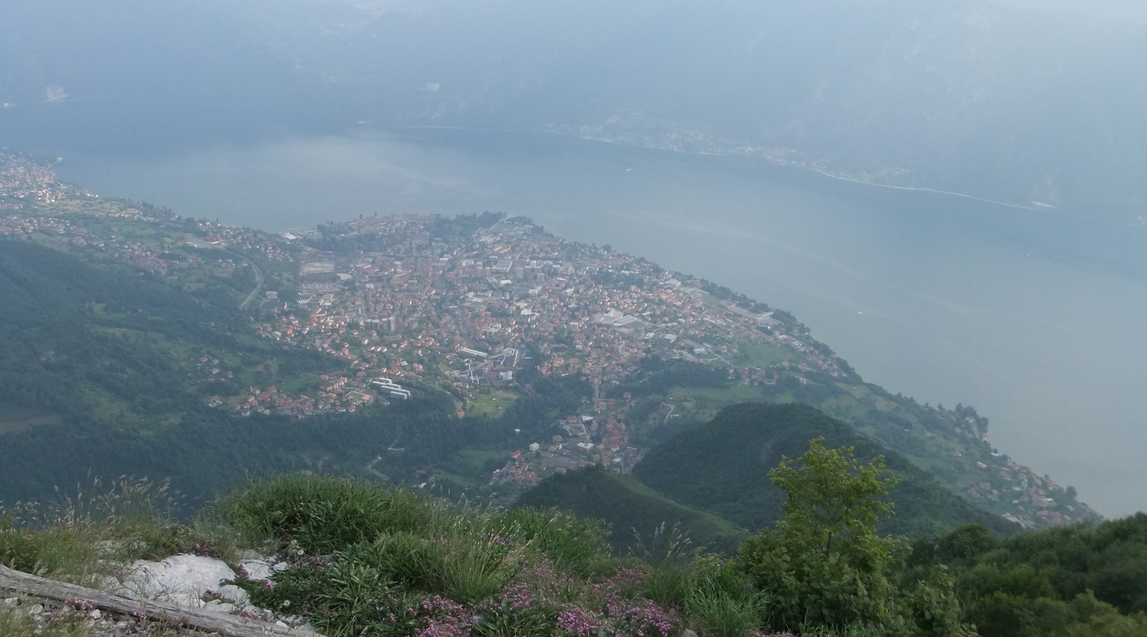 kein hoher Berg, aber nahe Aussicht hinunter zu den Seen von Como und Lecco