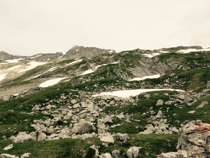 Wir sind bei der Bergstation Gumen gestartet; dort dem Wanderweg entlang Richtung Bützi. Ab da weiter den Steinmännchen entlang bis zum Schäferhüttchen. Ab da hoch bis zur Moräne und von da im Firn bis zum Gipfelhang. Bis da hatte es nur noch einzelne Schneefelder. Insbesondere für den Rückweg waren diese sehr angenehm.