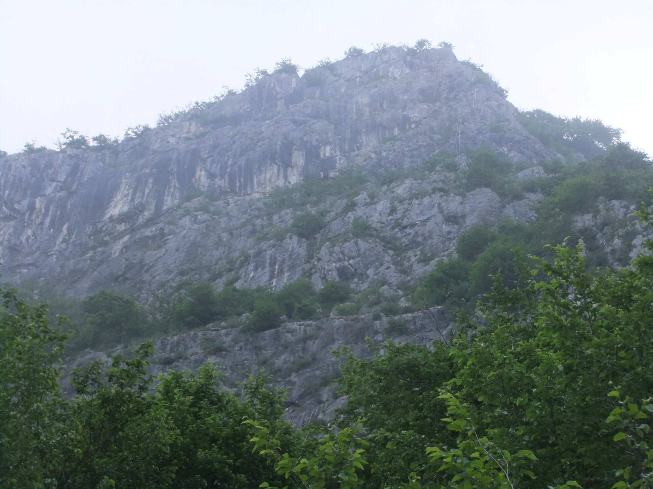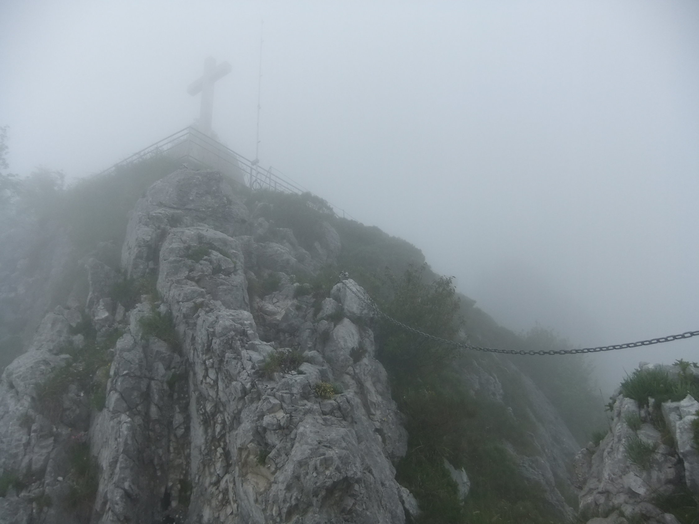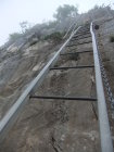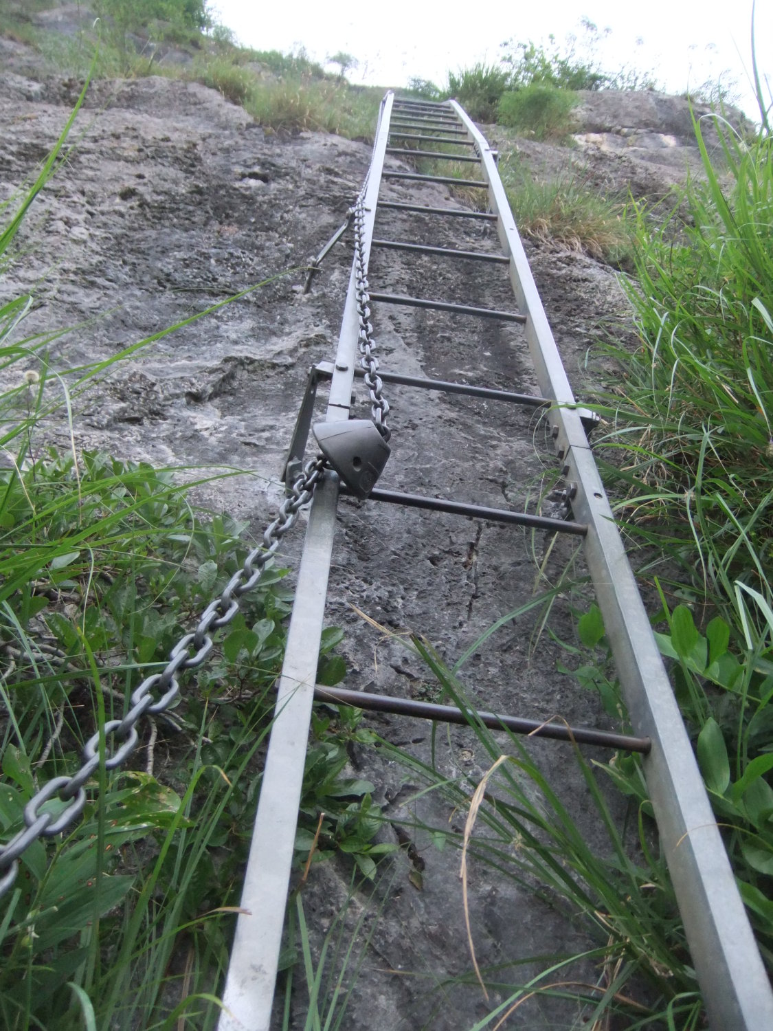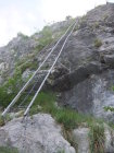 Tourenbeginn um 06:30 Uhr. Ein Steig mit so vielen Leitern (wohl in Summe mit über 200 m Länge auf 600 Hm verteilt) ist mir bisher noch nicht begegnet. Das Wetter zog zu. Die Nebelwolken bewirkten feinen Niesel. Sicht am Vormittag gleich Null. Darum verzichtete ich auf Fortsetzung der Tour mit dem KS Gamma II. Sondern stieg zur Via ferrata de Franco Silvano weiter (extra Tourenbeschreibung).