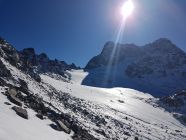 Die E-Seite direkt unterhalb der Fuorcla Viluoch (P2936) sieht aktuell sehr winterlich, resp. beschwerlich aus.