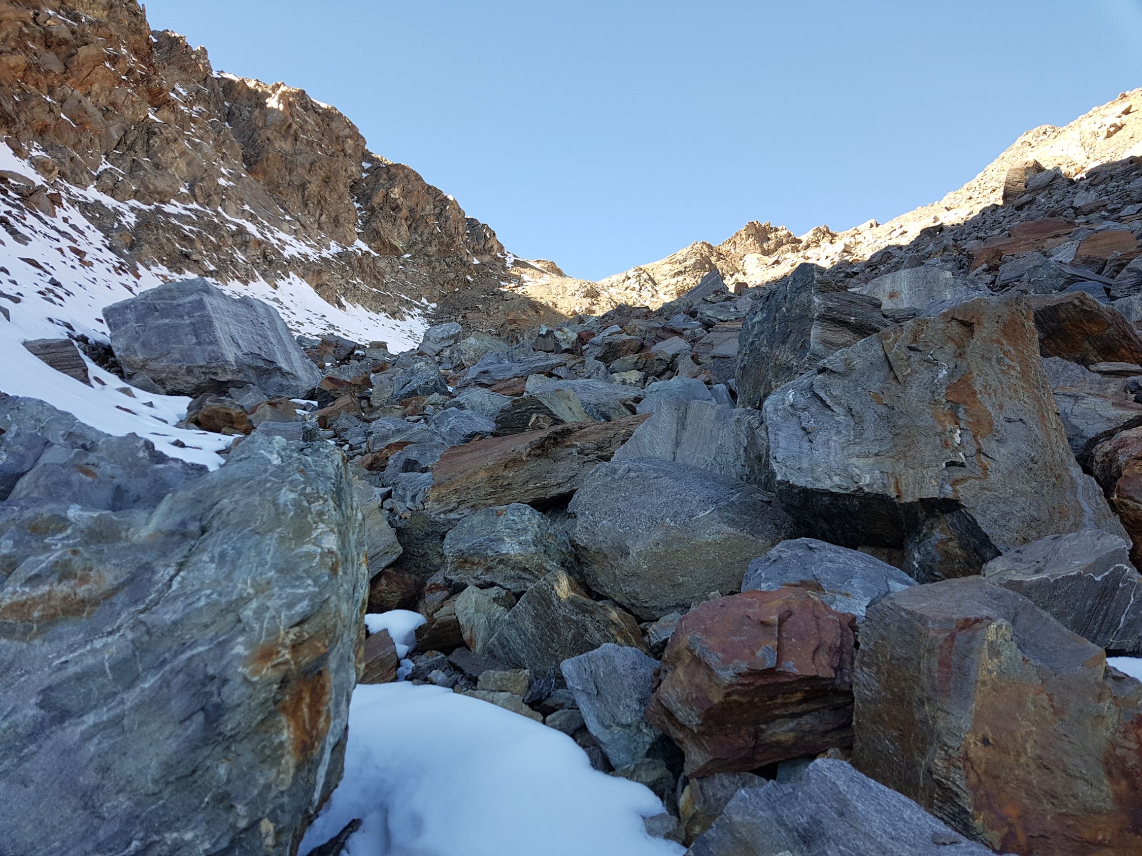 Hier herrscht Bruchharsch im unstabilem Blockgelände, was das Fortbewegen sehr anspruchsvoll macht.
