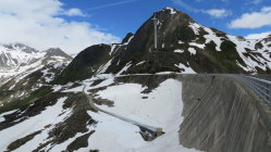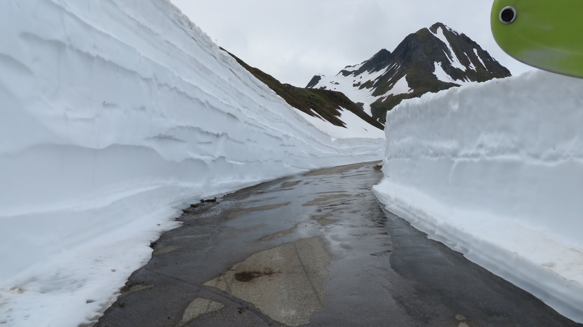 Wir sind von der Nufenenpassstrasse Rossbode 2303m die 2,3km bis ende Staumauer mit dem Velo gefahren denn es hat bis 6 Meter hohe Schneewände und aus den Steilen Seiten könnte jederzeit ein Schneebrett oder Steine auf die Strasse runterkommen und diese verschütten. Also Auto fahrt dringend abzuraten!