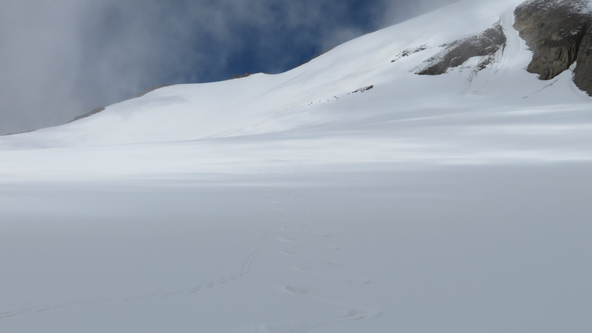 Gletscher noch gut eingeschneit und nur wenige Blankstellen