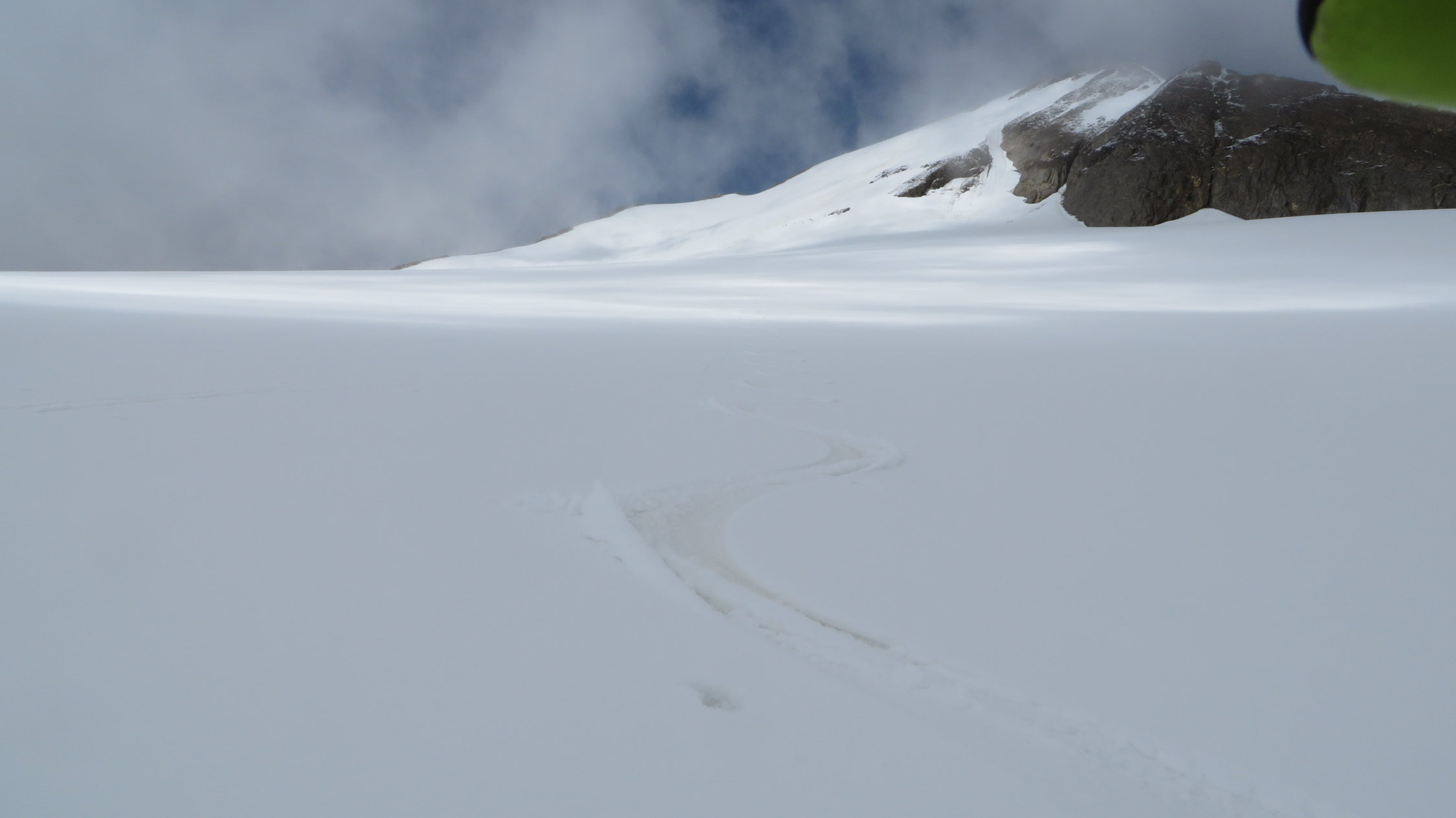 Oberhalb 3000m ca 5-10 cm Nasser Neuschnee der seidenfein zum Abfahren war.