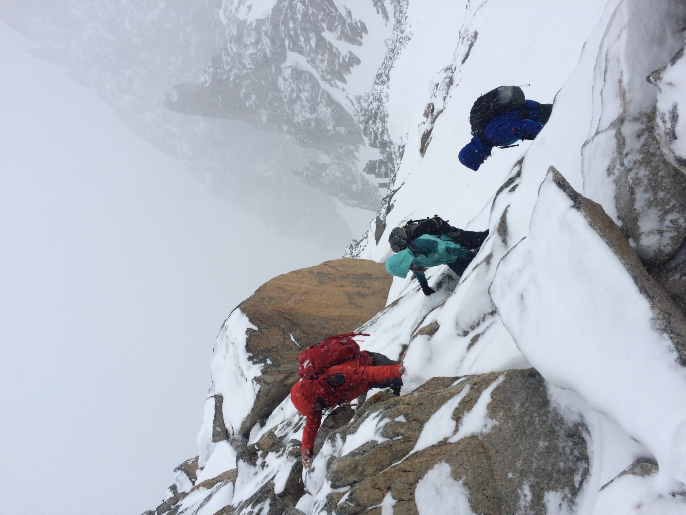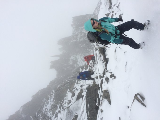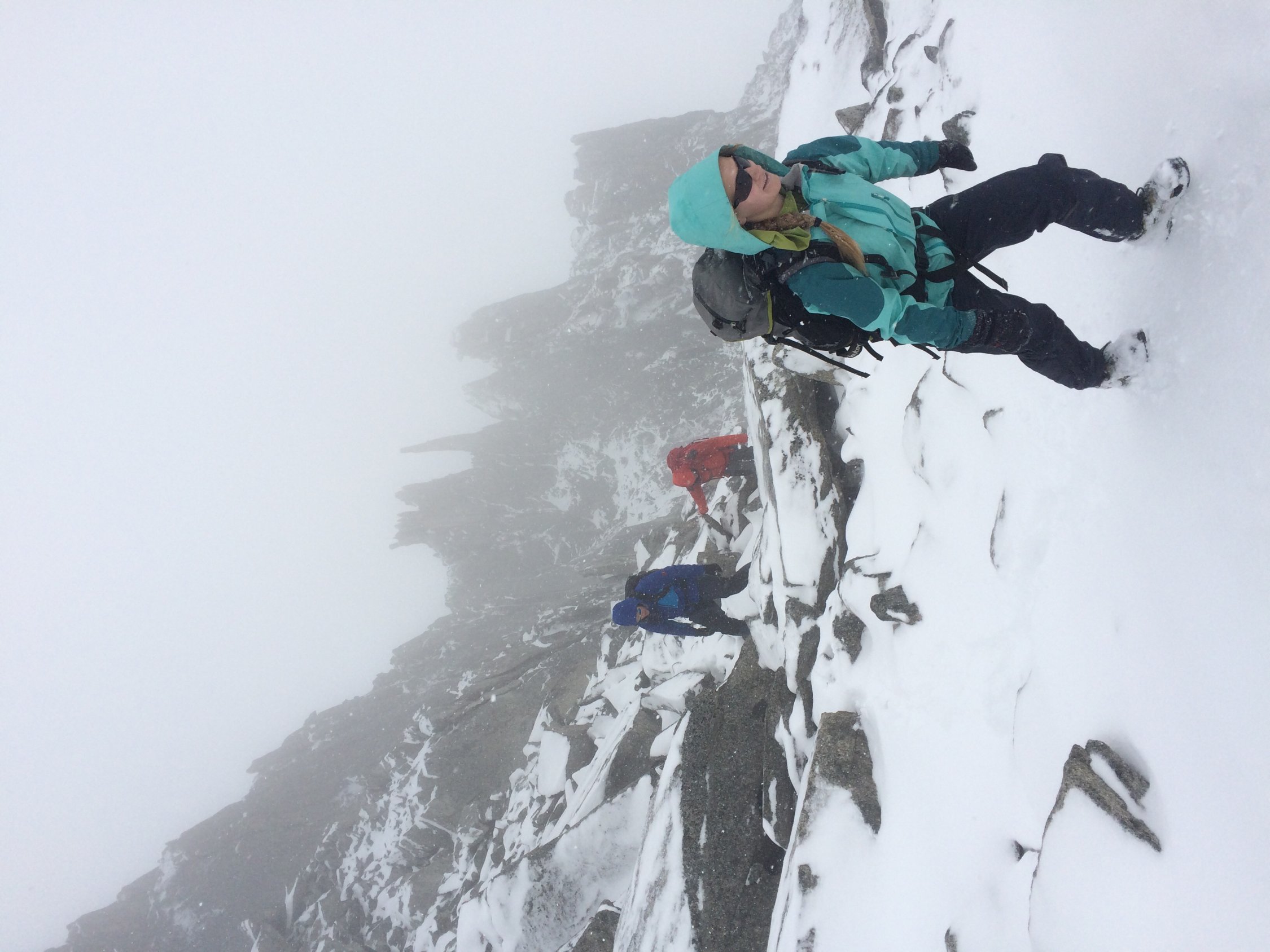 Die letzten Meter zum Gipfel erfordern leichte Kletterei, die heute frisch verschneit recht heikel war.