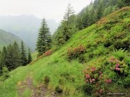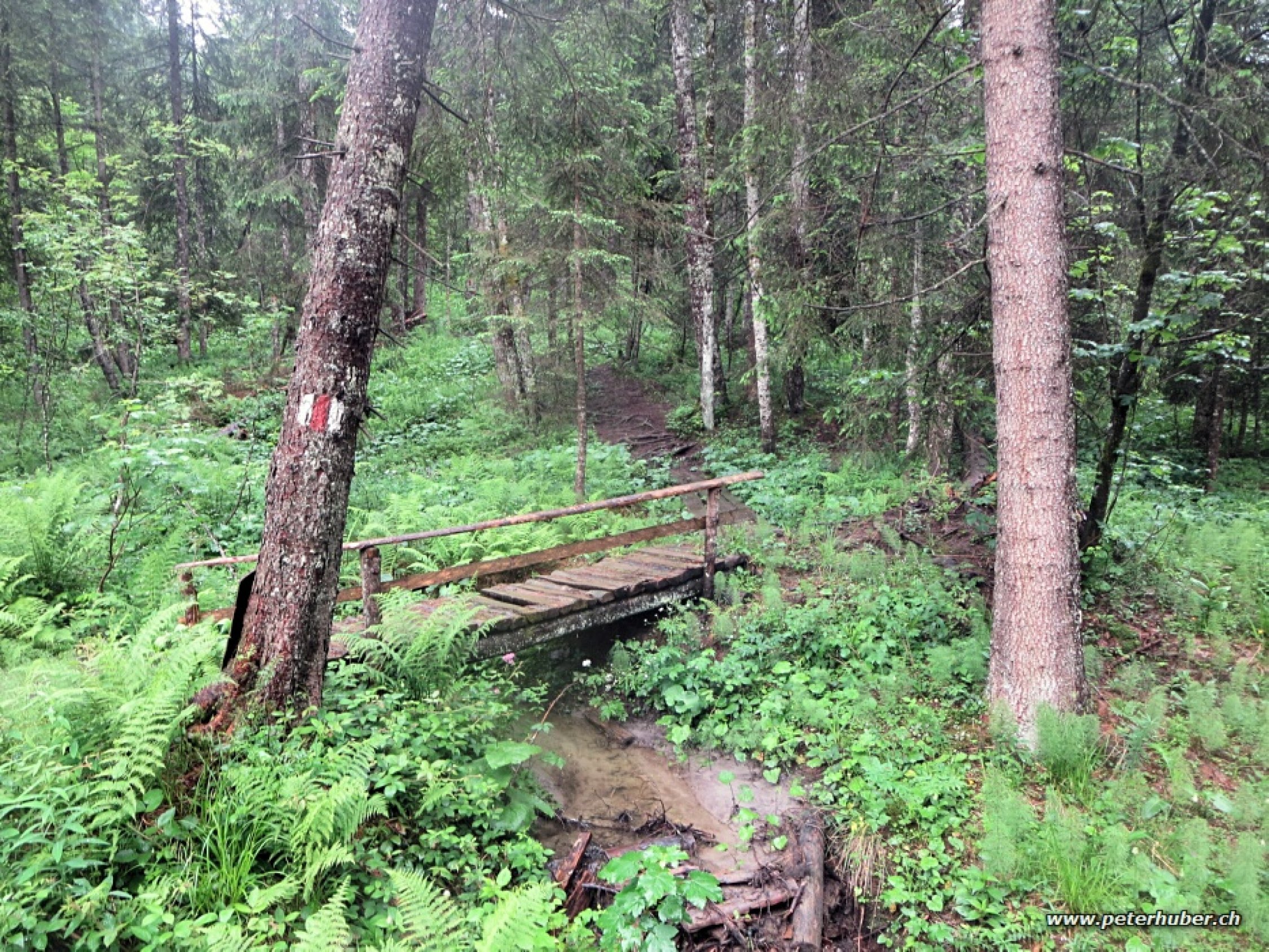 Abstieg über Alp Fluebrig auf der Nordseite und Rückkehr zum Ochsenboden via Fläschlihöchi. Rund um die Alp Fluebrig war der Weg mit erdigem Grund sehr rutschig. Im Wald bei Wisstannen hat der Zivilschutz etliche Stege mit Holzstämmen errichtet - das hilft gegen den sumpfigen Untergrund, nur bei Nässe sind sie seeehr rutschig. Auch ich bin auf dem Hosenboden gelandet.